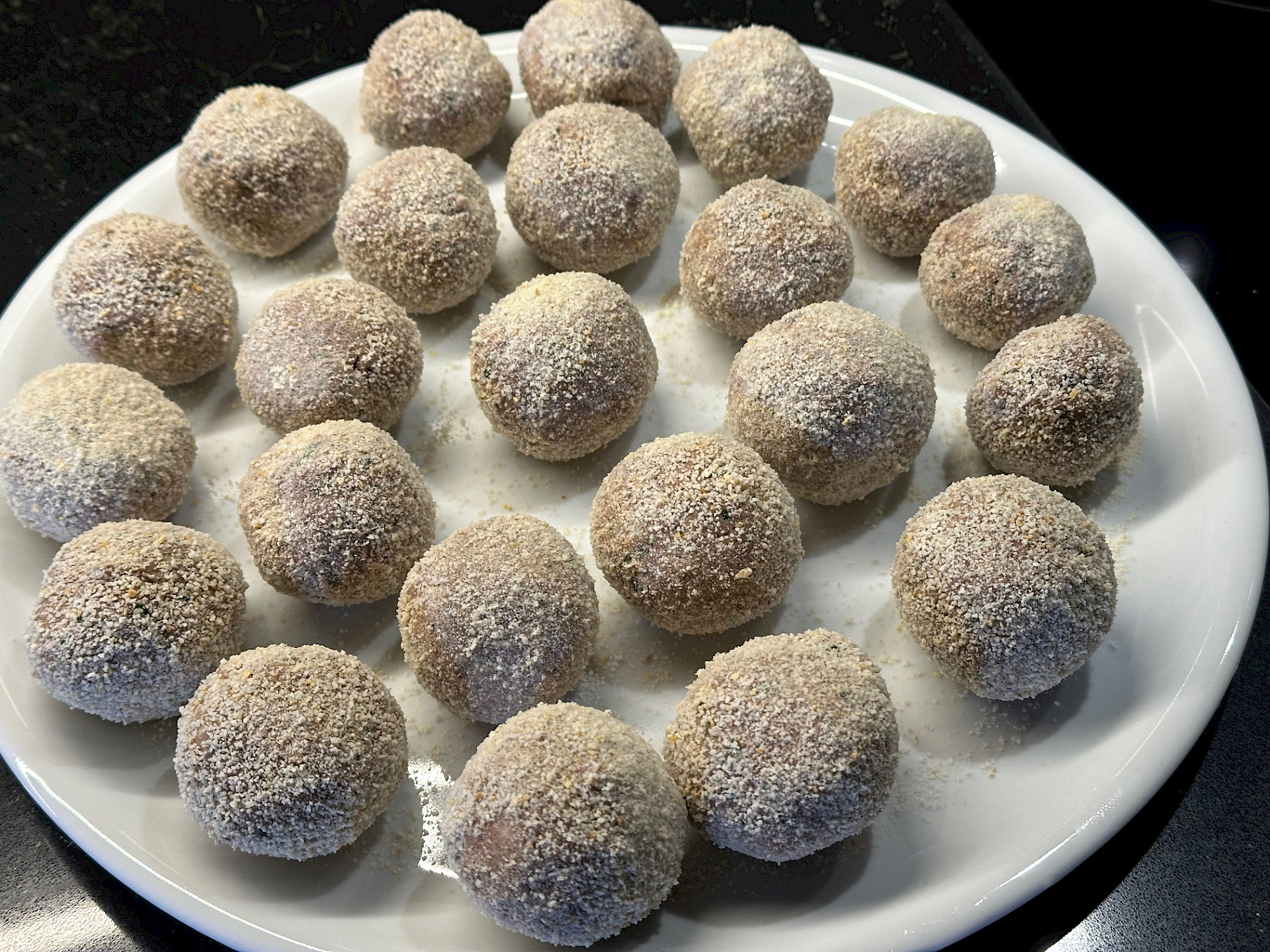 - Infarinare le polpette, poi passarle nell’uovo sbattuto e infine nel pangrattato.