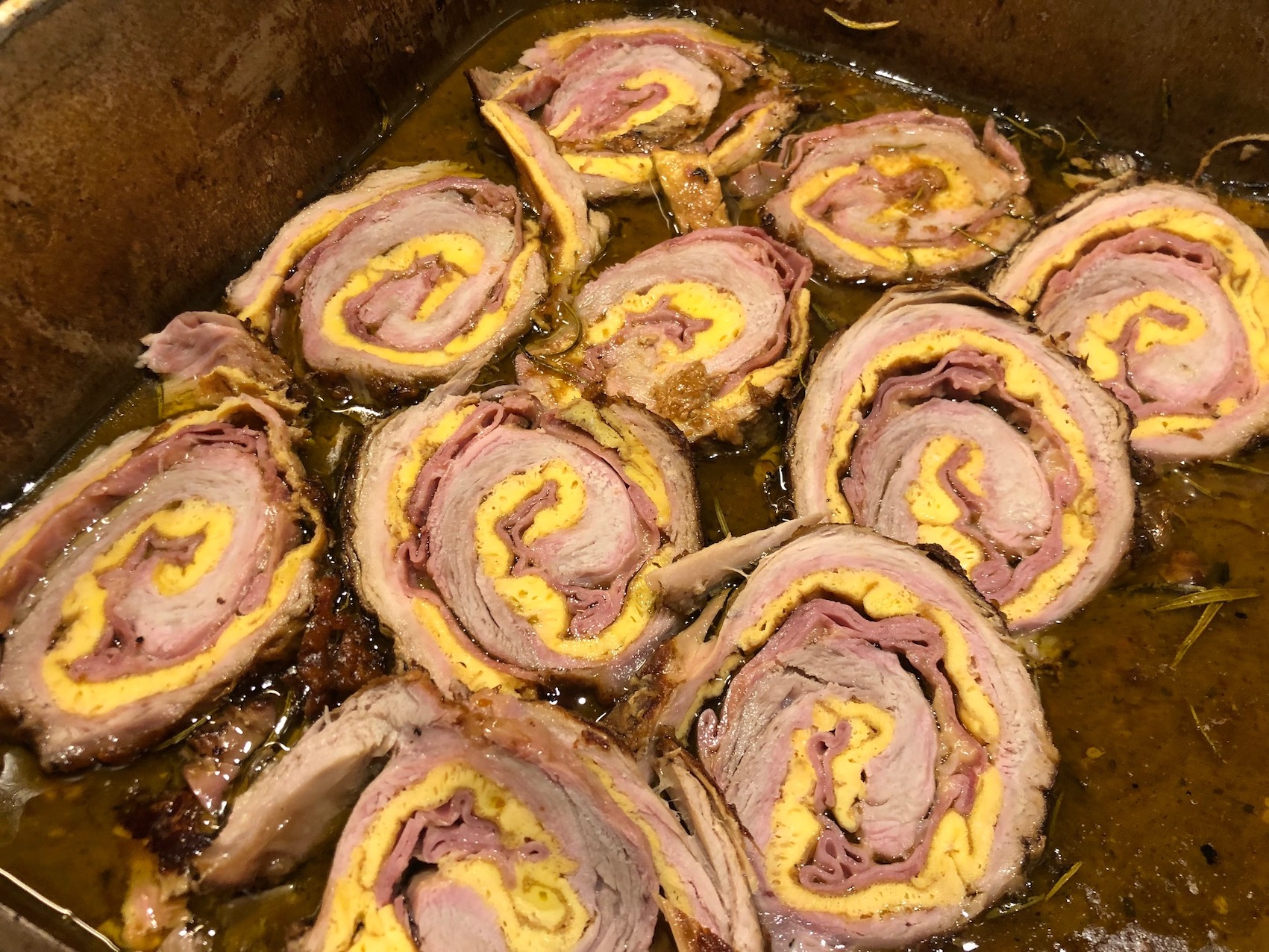 - Cuocere per un'ora e mezza ca (se la carne supera il kg aumentare leggermente, se pesa di meno diminuire un poco; a titolo di esempio ho cotto nella stessa pentola per due ore e mezza tre arrotolati di un peso totale di 2,5 kg)