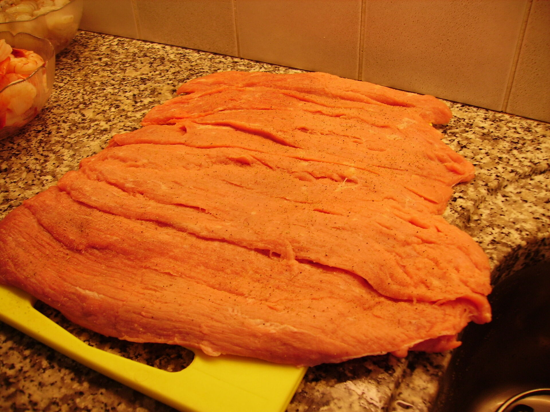 - Se il fettone non è bello regolare, batterlo ancora ed appiattirlo con il batticarne