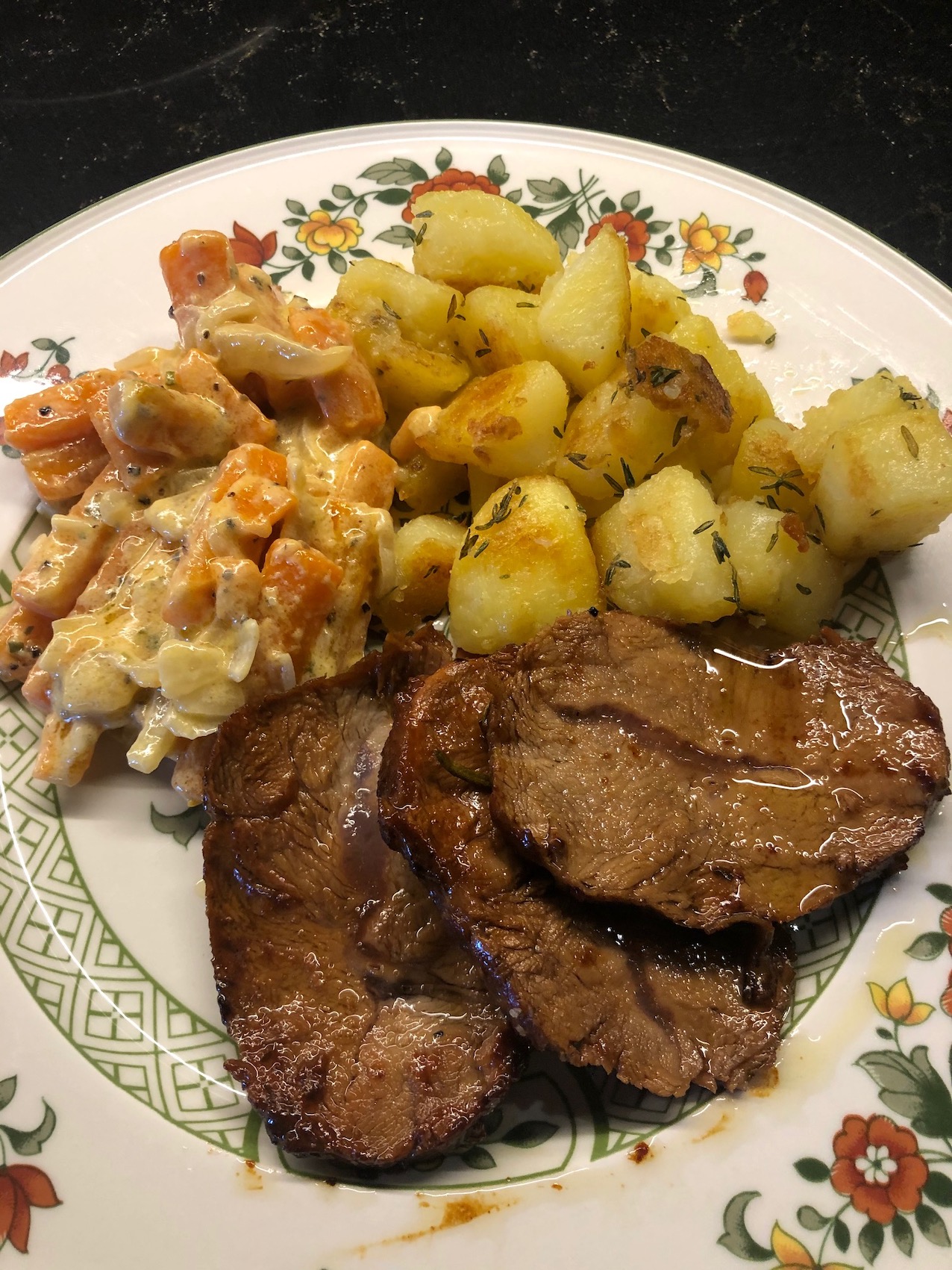 - Servire con una purea di patate o altro (ad es patate arrosto o tagliatelle) secondo i propri gusti.
