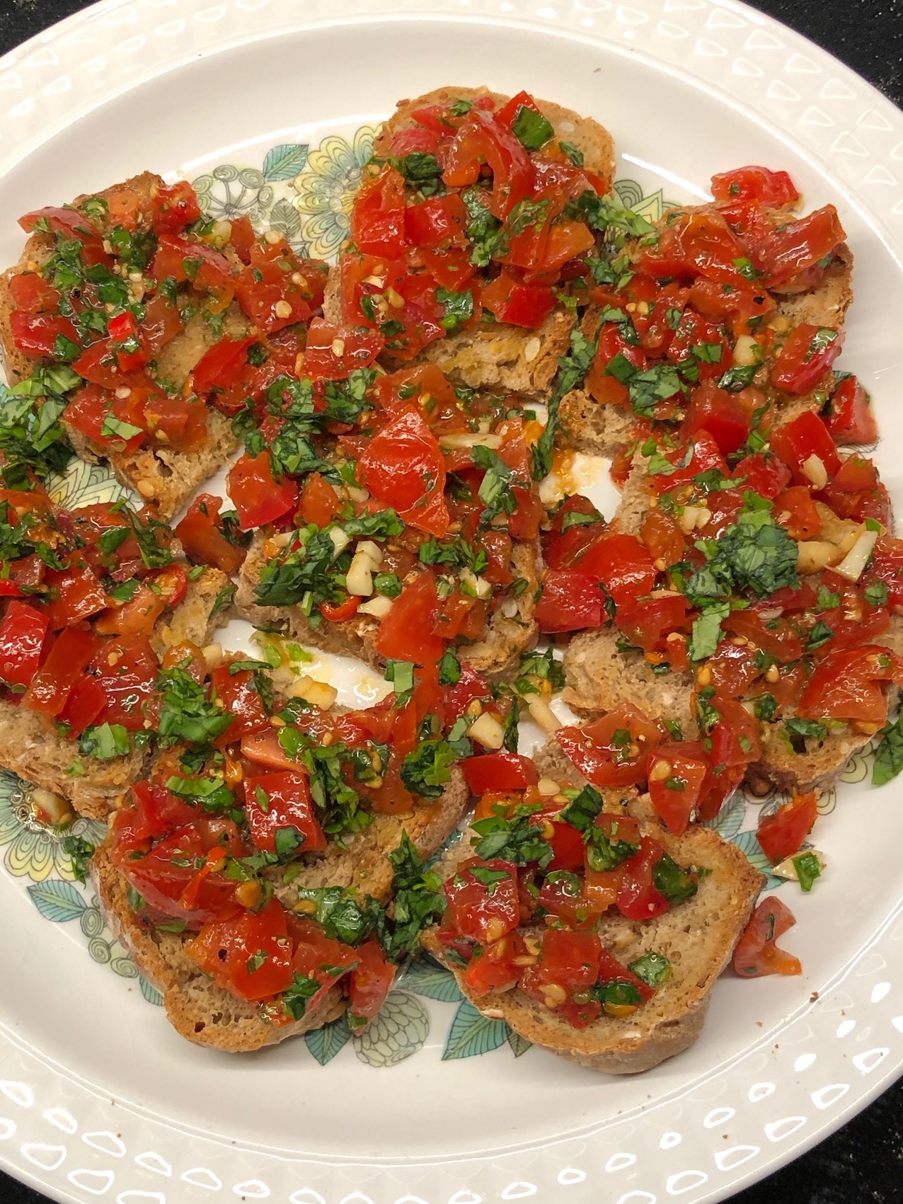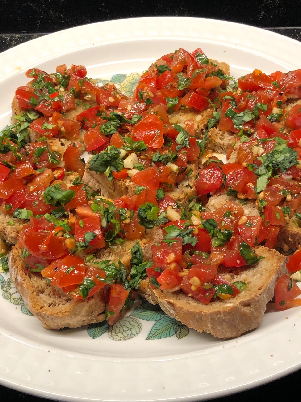 Si può eventualmente optare per fare due condimenti separati, ad esempio eseguendone uno senza aglio e/o peperoncino. - Scegliere di preferenza un pane con mollica "a buchi" (tipo pugliese o Valle Maggia) e tagliare delle fette alte ½ cm.