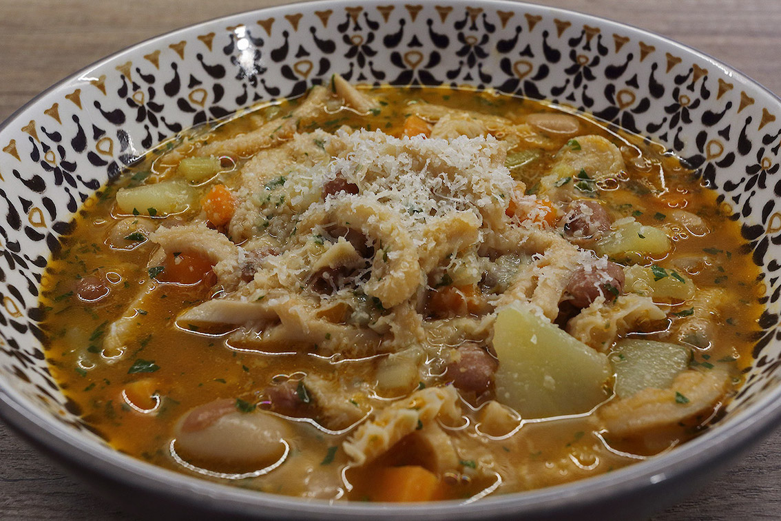 - Coprire con il brodo e cuocere per 25 minuti su calore tenue (la minestra acquista più sapore con tempi di cottura allungati!)