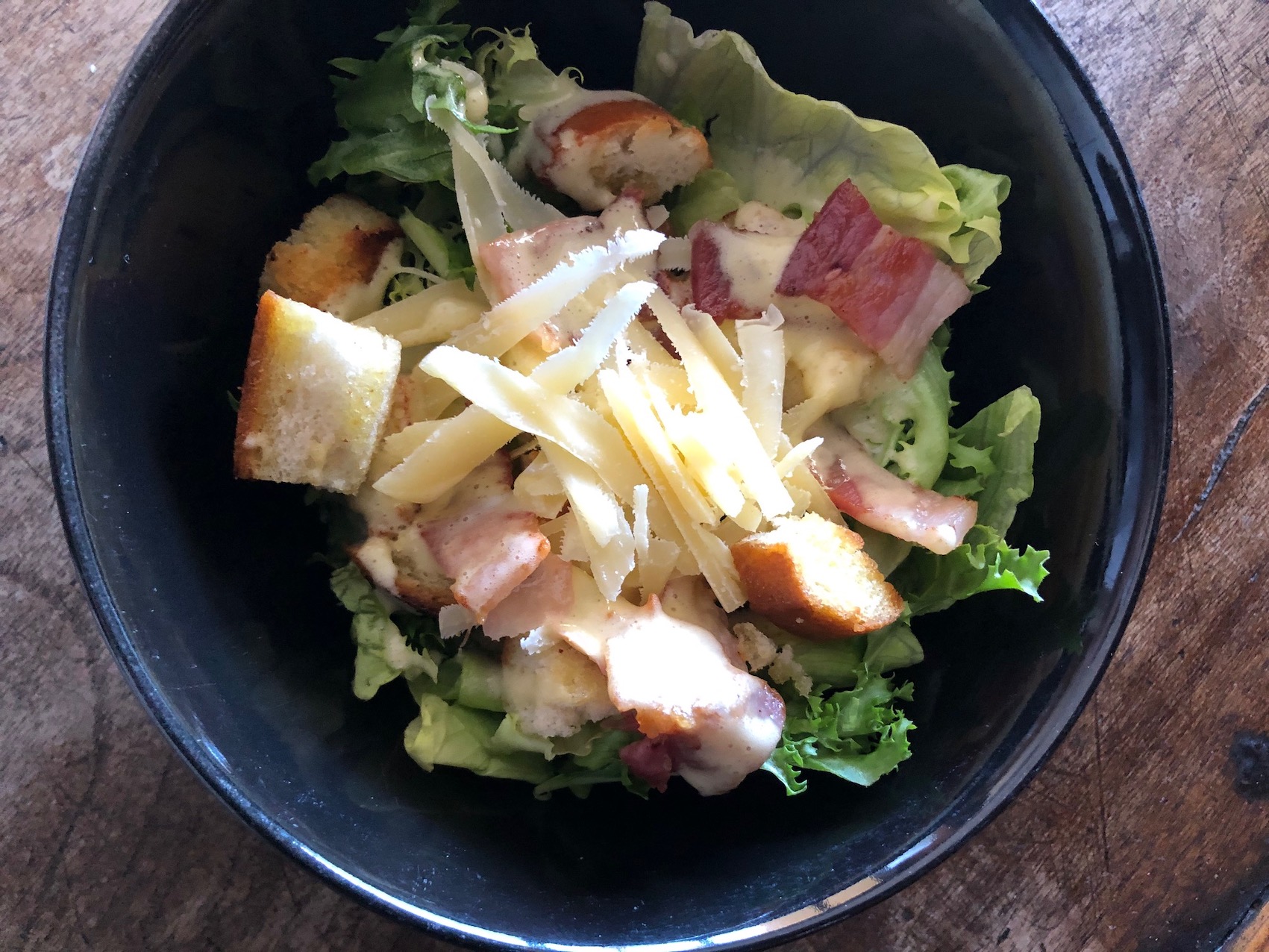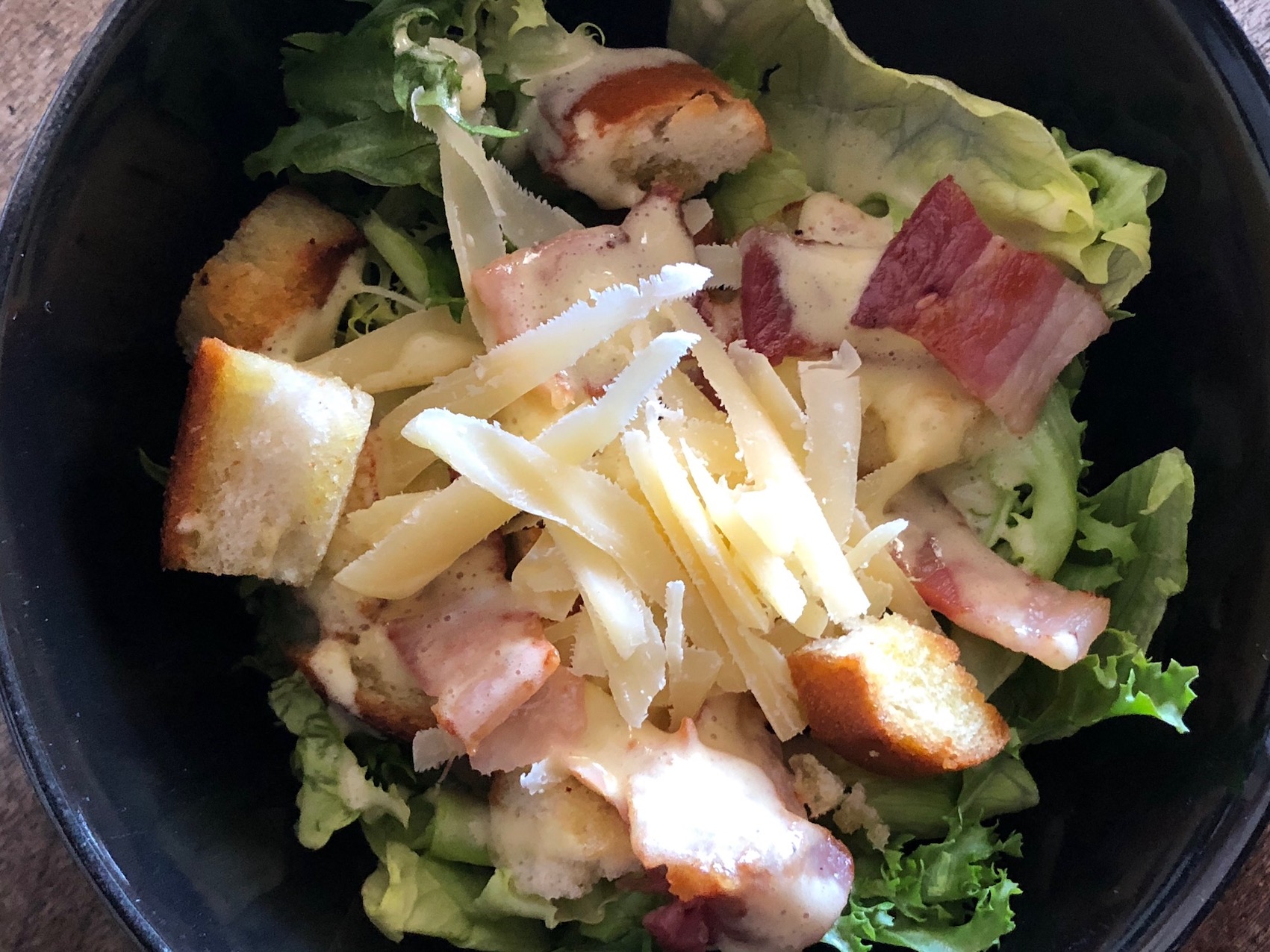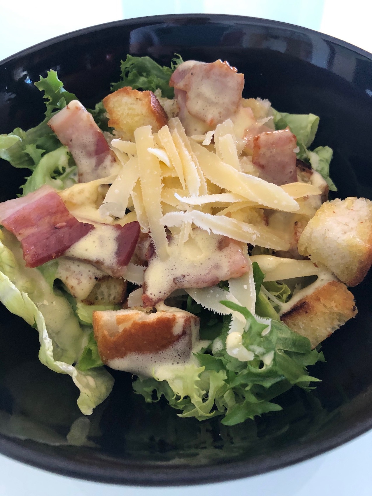 Col passare degli anni la Caesar salad ha subito delle “trasformazioni”: sono stati aggiunti degli ingredienti per renderla più ricca e saporita, come ad esempio della pancetta croccante oppure del petto di pollo arrostito e tagliato a filetti o ancora dei gamberi o delle acciughe.