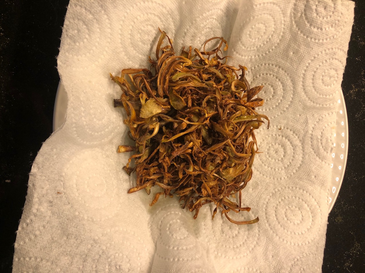 - Con una schiumarola adagiarli in un piatto con della carta da cucina, in modo da assorbire l’olio in eccesso.