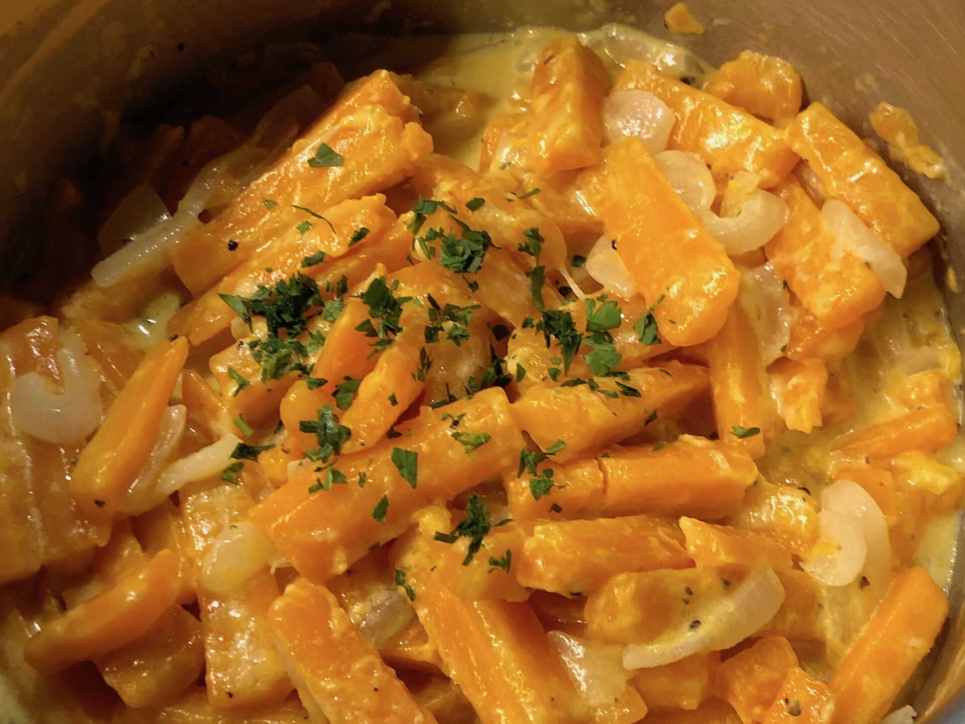 Eventualmente togliere dal fuoco, lasciare raffreddare e riscaldare al momento di servire (ev aggiungere un poco di panna se sono troppo asciutte). - Servire cospargendo con un pizzico di prezzemolo sminuzzato.