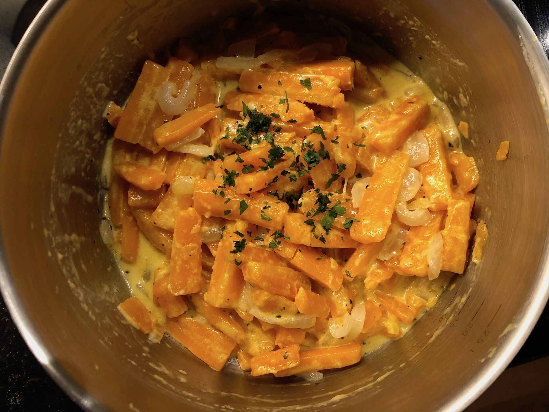 - Salare quando prende il bollore e proseguire per ca 20 minuti (controllare con un coltello la consistenza delle carote: sono cotte se la punta del coltello le passa senza forzare).