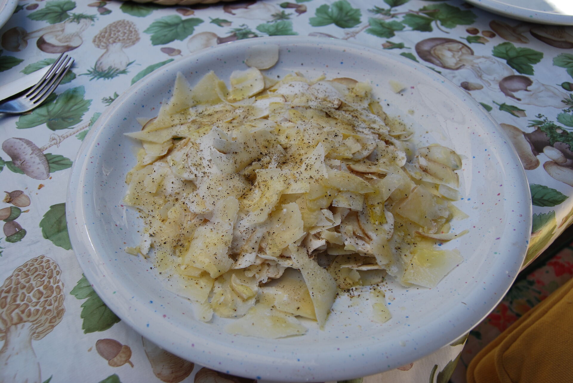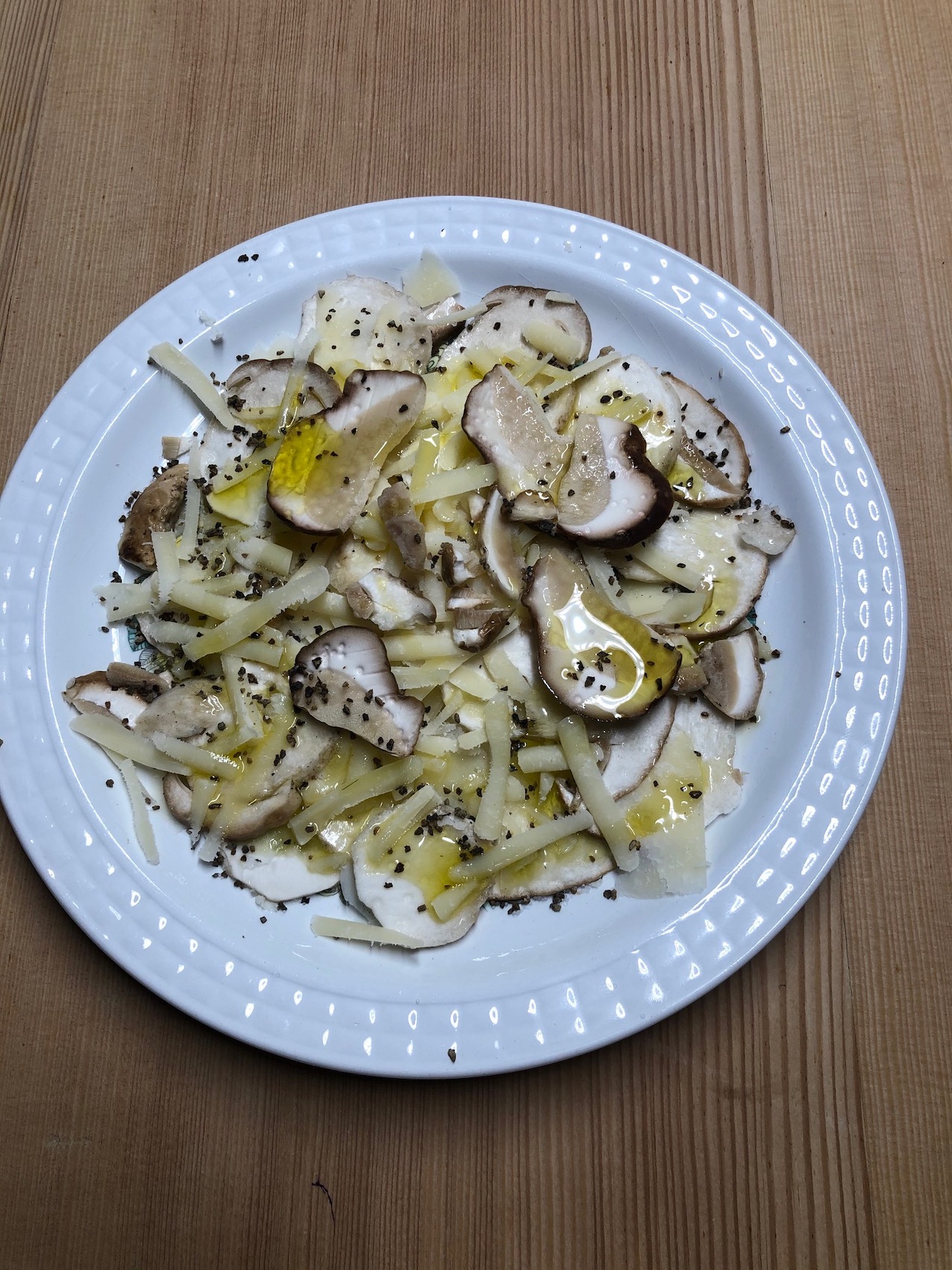 - Affettare molto finemente i porcini freschi (usare ad esempio il pelapatate). Salarli leggermente.