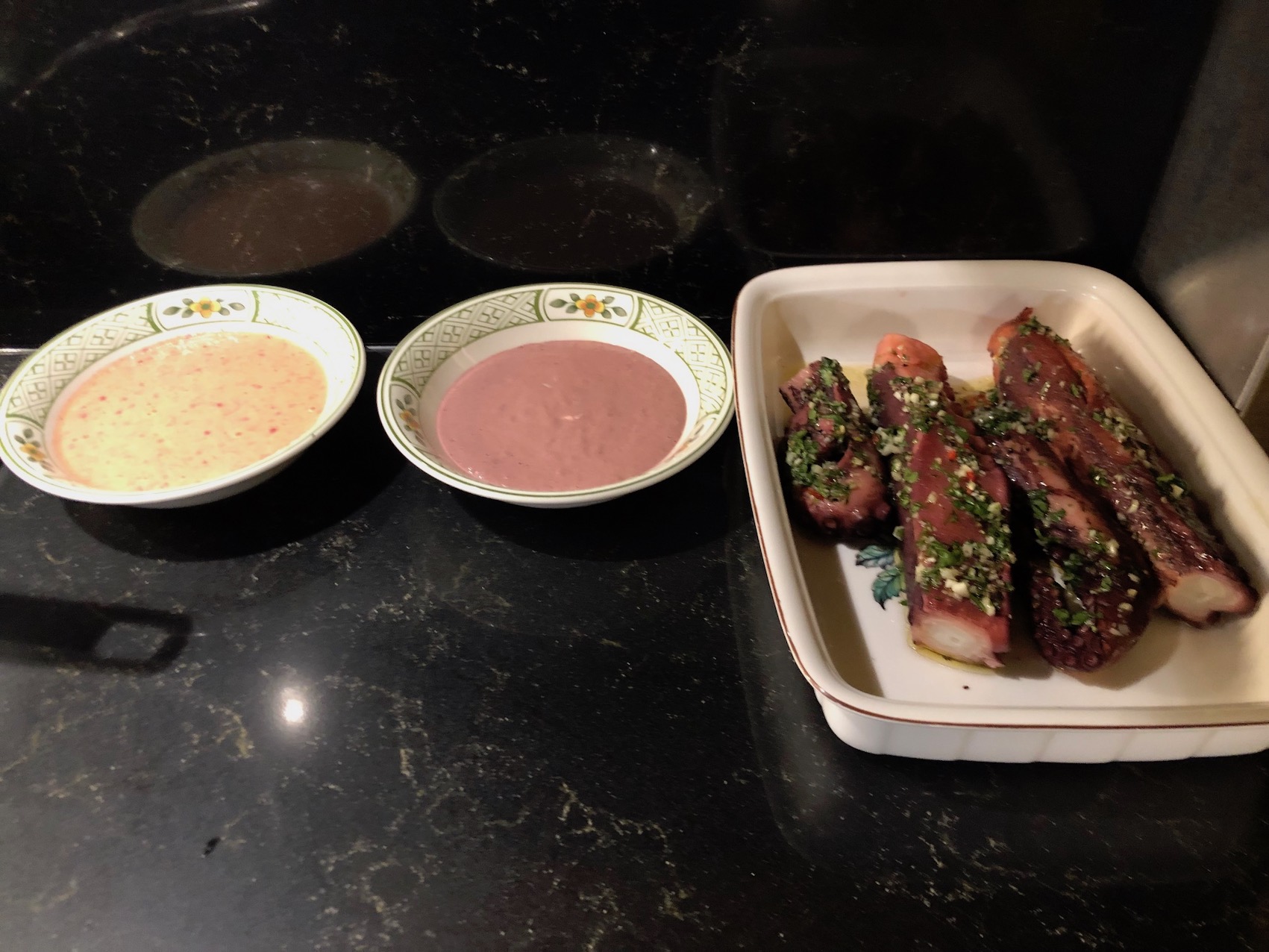 - Tagliare il polipo e cospargelo con la salsa chimichurry. Lasciare marinare.