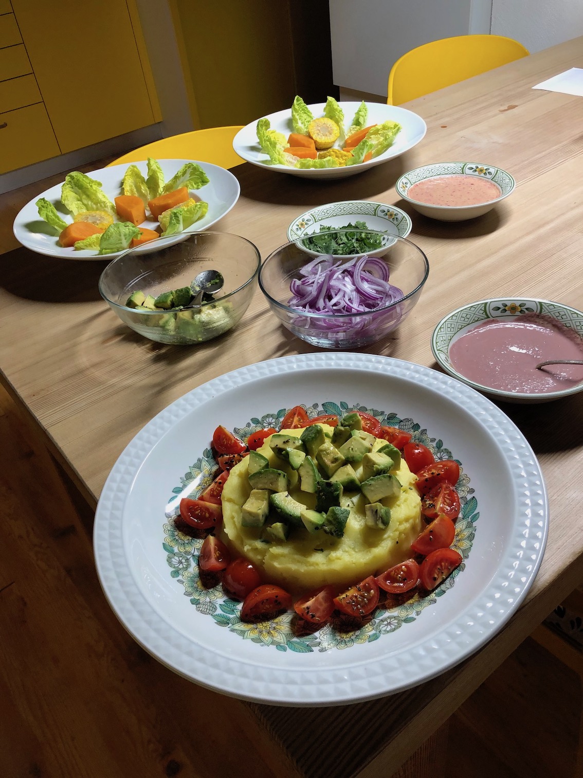 - mettere al centro del piatto di portata la purea di patate sagomata come una torta alta 2-3 cm.