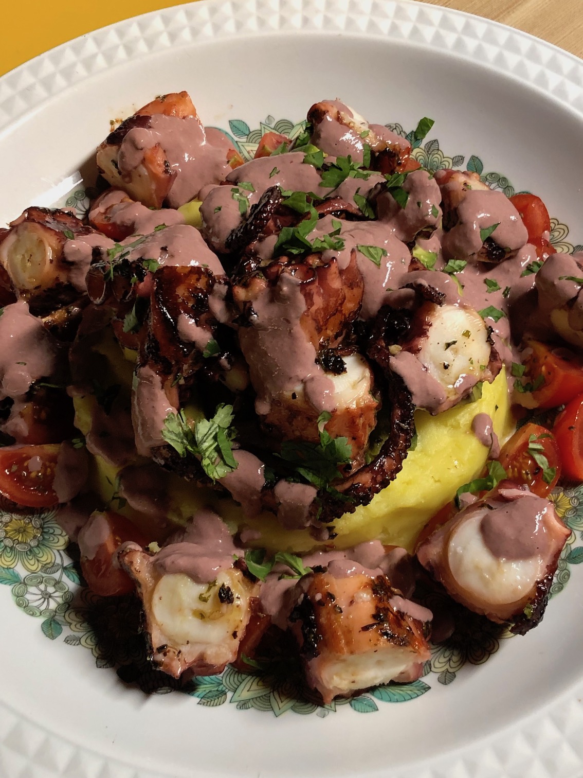 - 40 min per la purea di patate al limone; 5 min per rosolare il polipo.