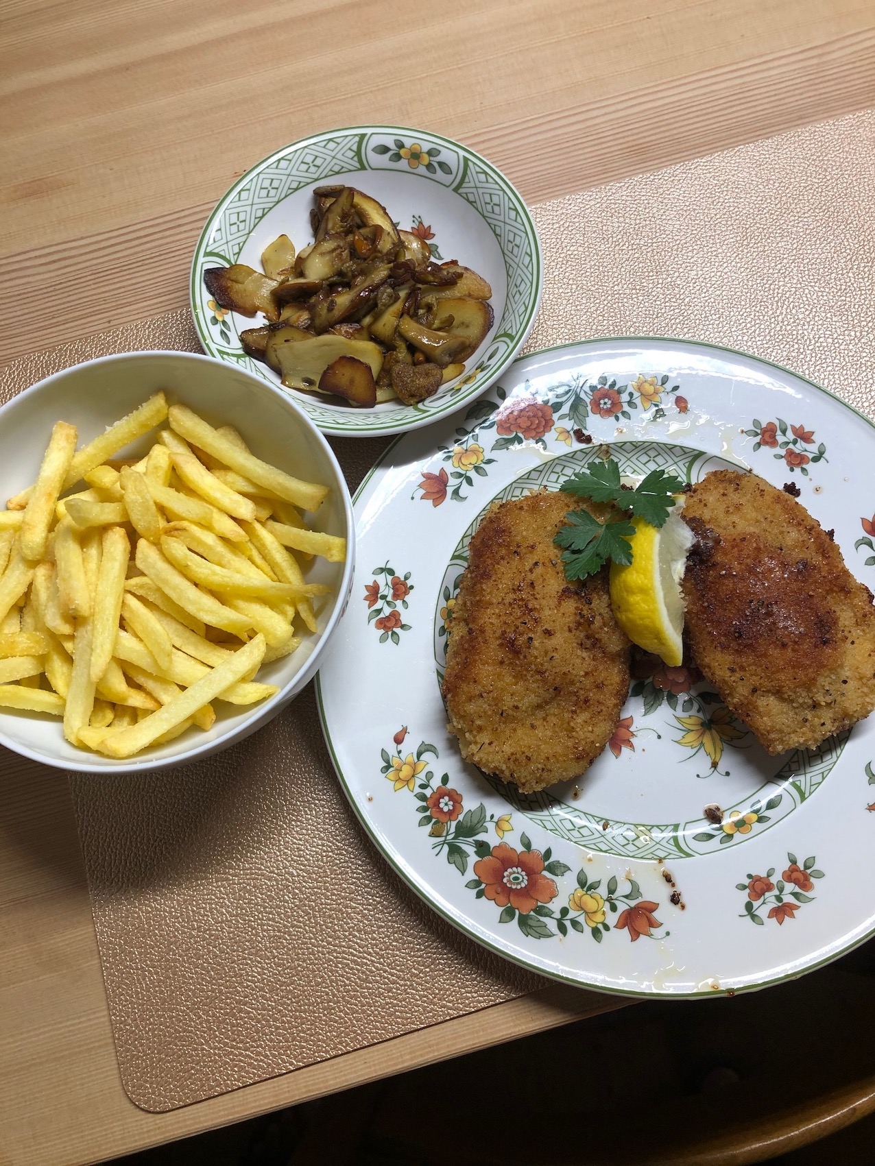 - Servire ad es. accompagnati da patate fritte e verdurine a propria scelta (ad es. piselli) o un'insalata.