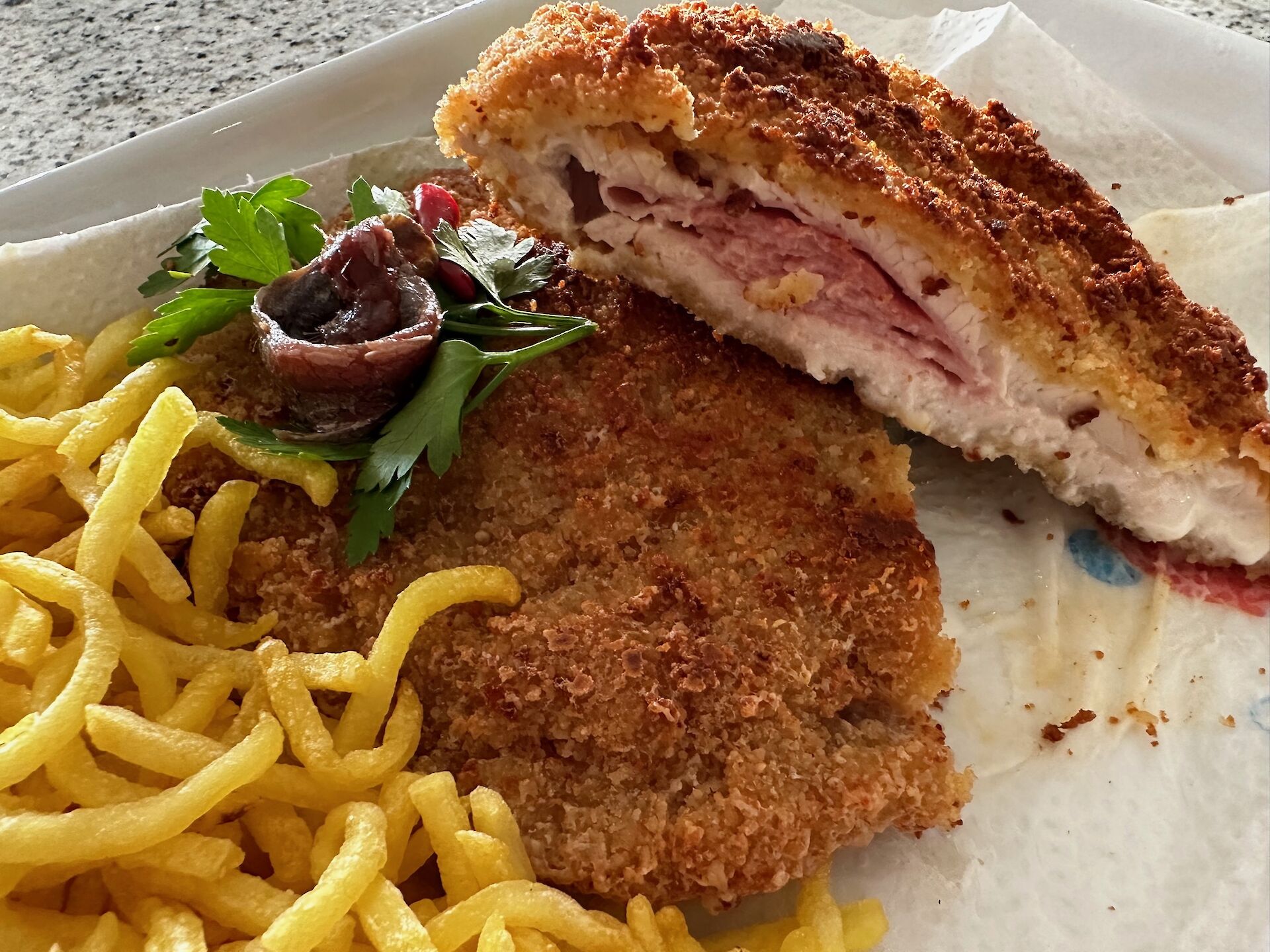 - Terminata la impanatura schiacciare i bordi in modo da far saldare le due fettine. Per sicurezza si possono mettere degli stuzzicadenti, anche se, grazie alla farina, dovrebbero comunque saldarsi.