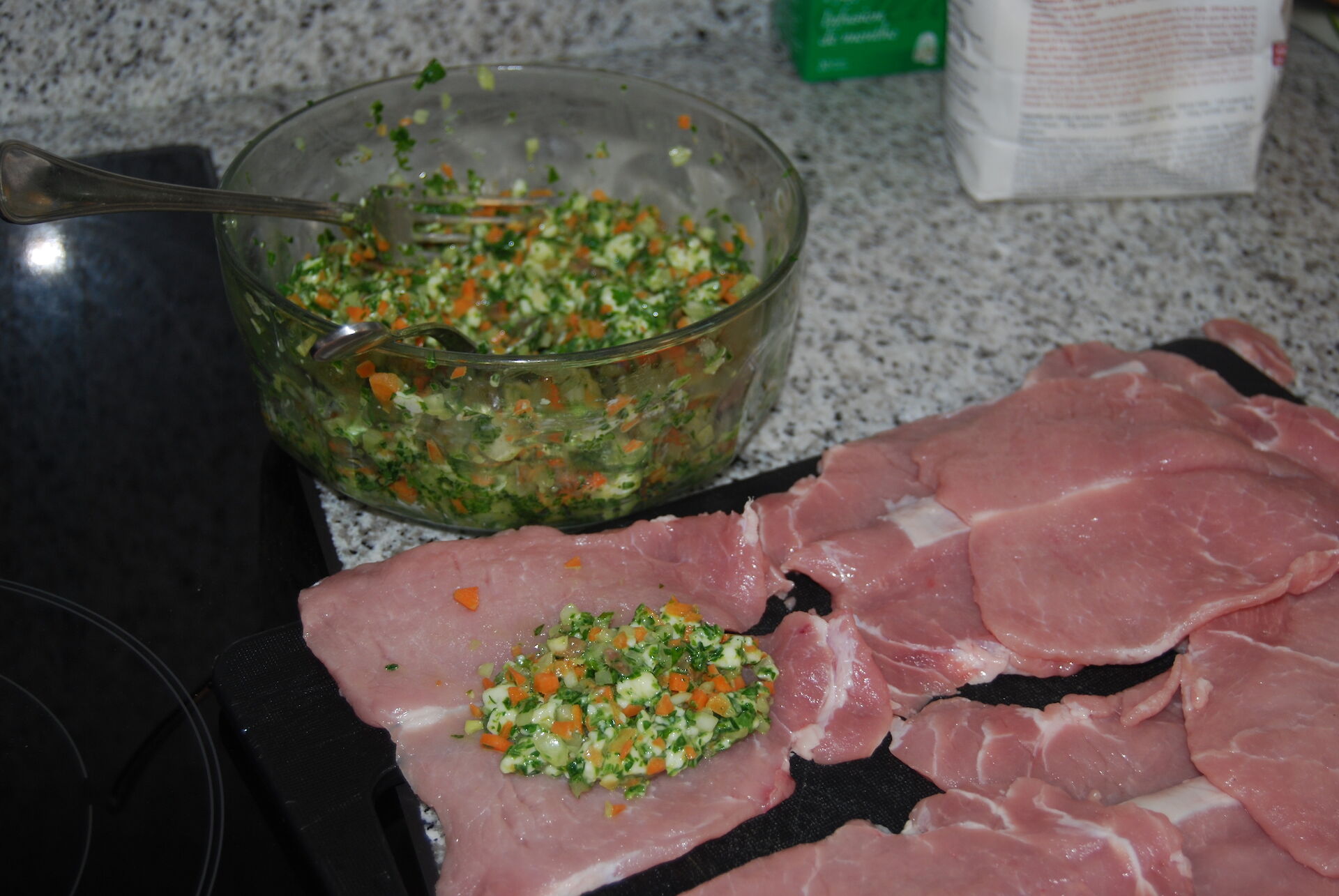 - Tagliare la lonza a fettine abbastanza alte in modo da poterle incidere per ricavare una tasca.