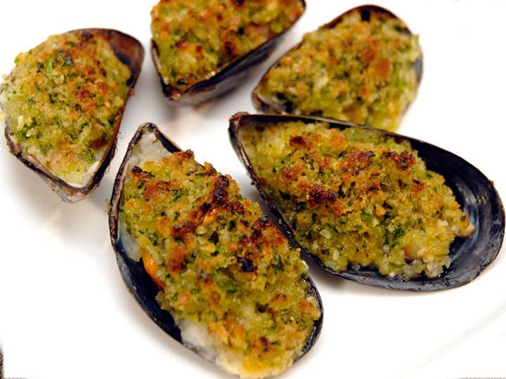 - Coprire le cozze con il burro alle erbe e spolverarle con il pangrattato.