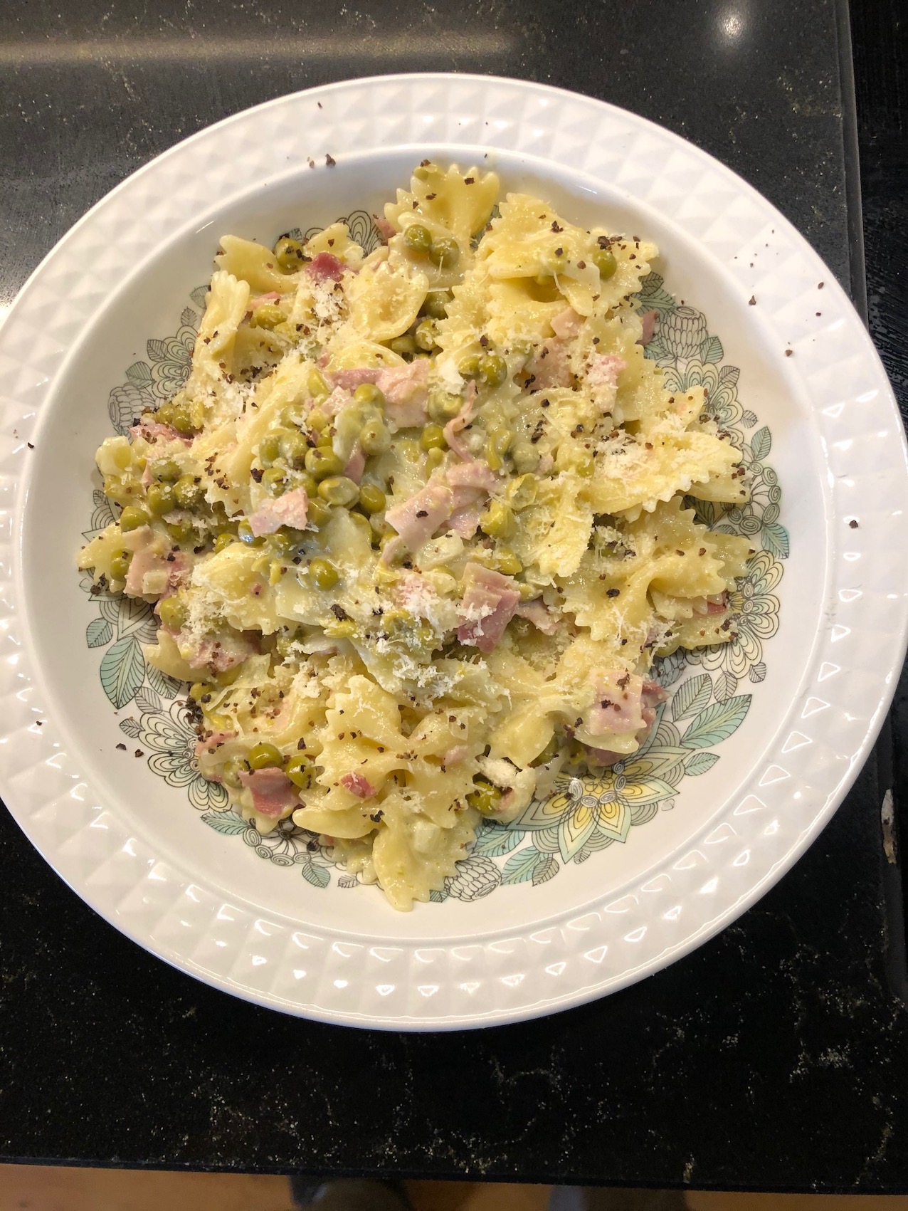 - 400 gr di farfalle (vanno bene anche fusilli o penne lisce)