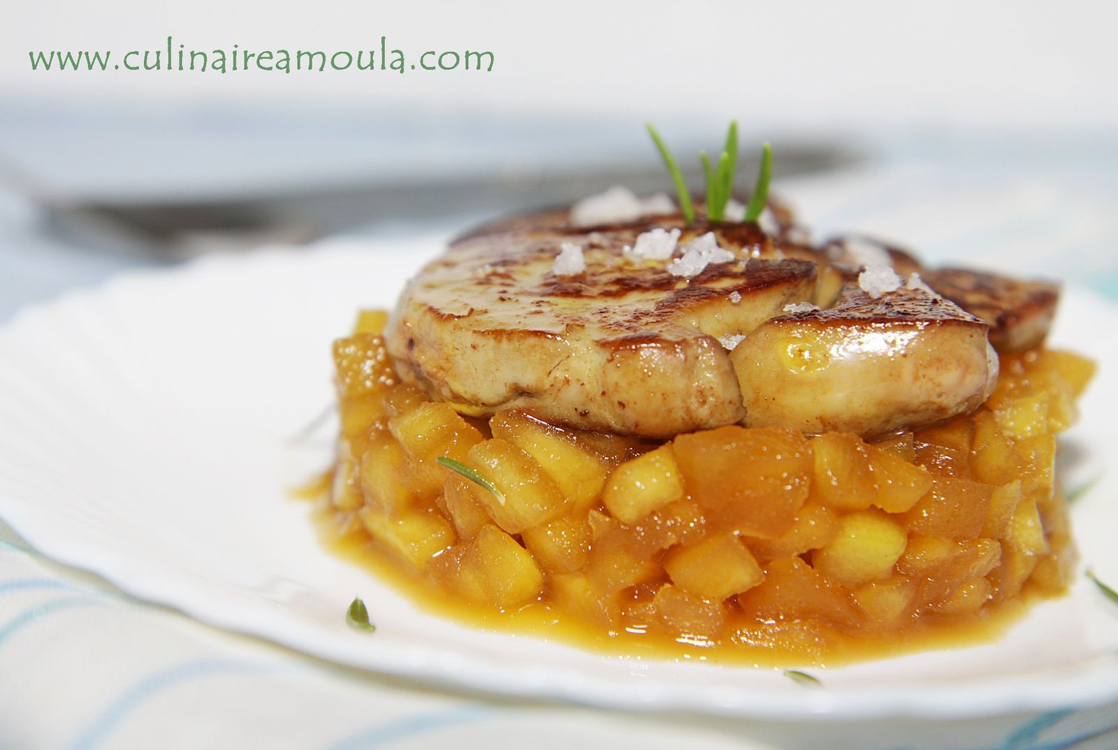 - In una padella già calda rosolare le fettine di foie gras senza alcun condimento.