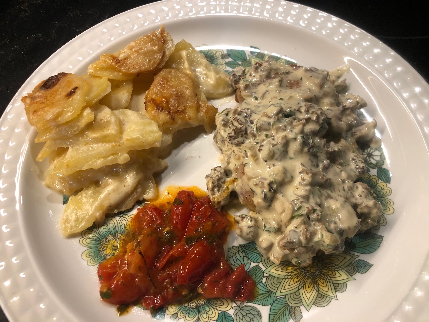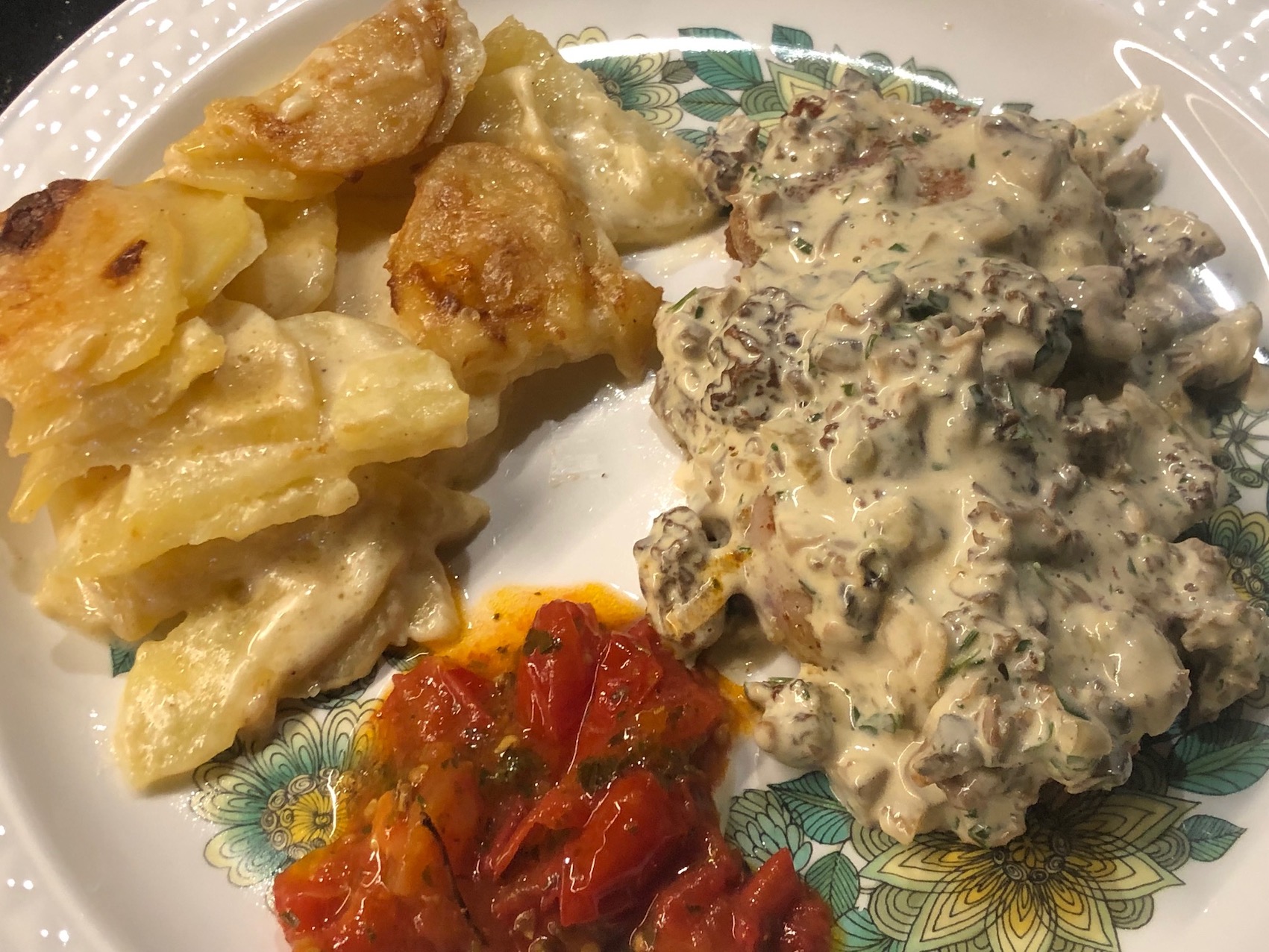 - A parte riscaldare la salsa alle spugnole ed il contorno scelto.