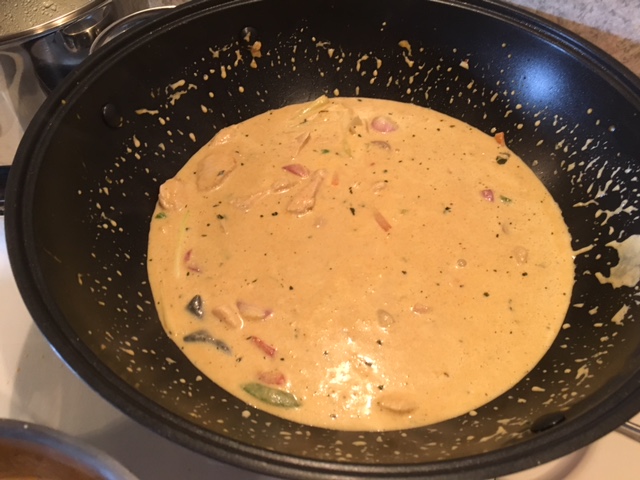 - In una padella o wok scaldare il latte di cocco con il contenuto della confezione.