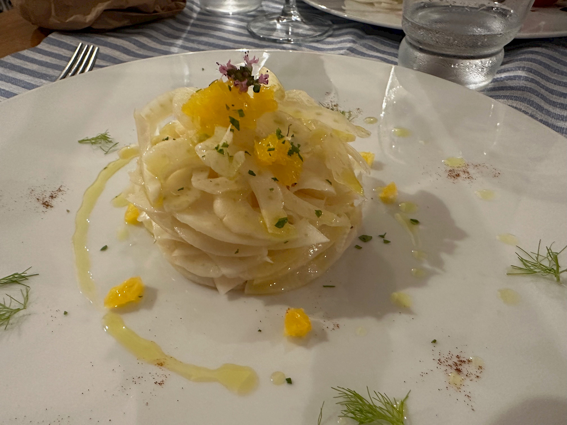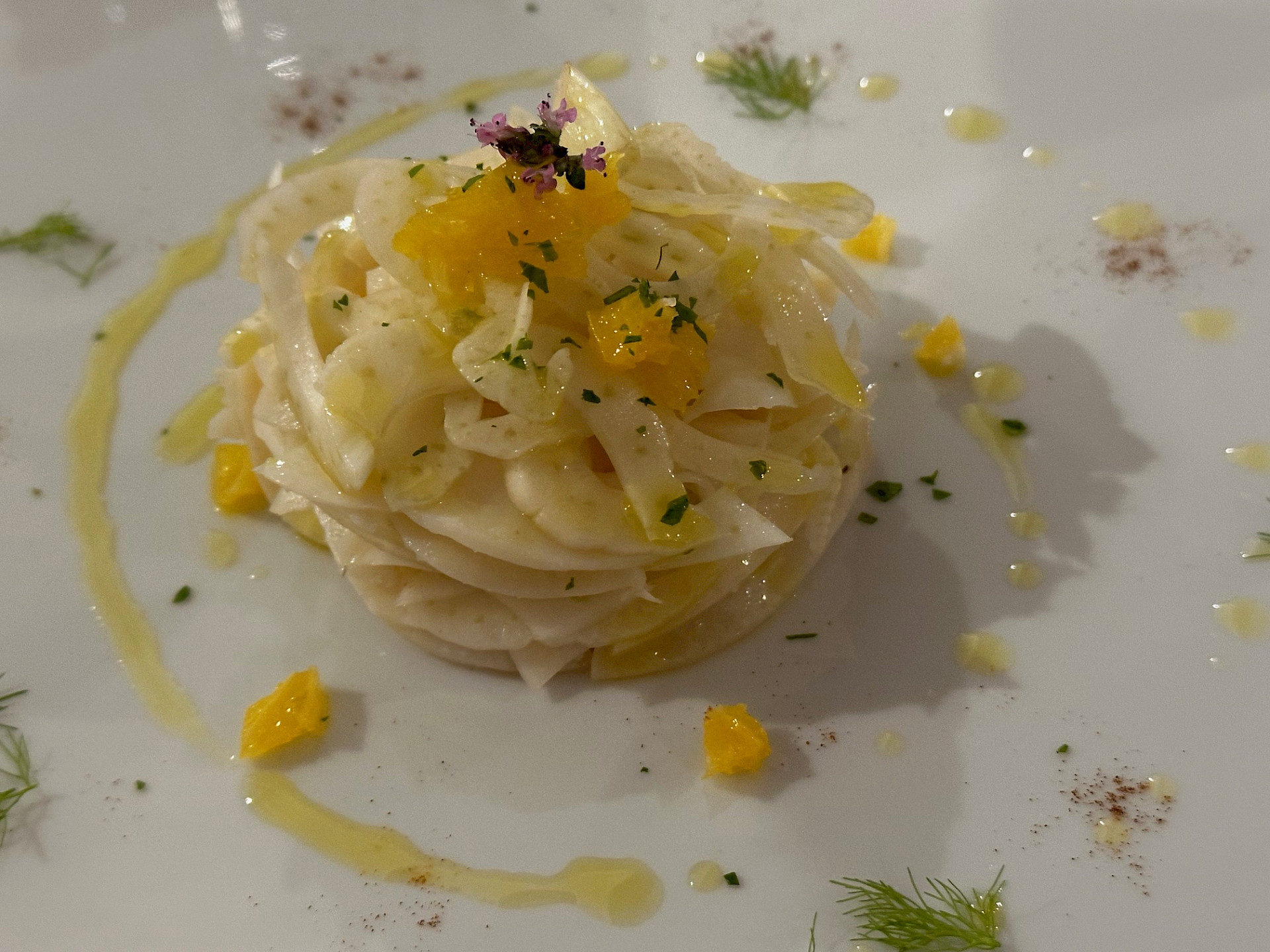- Pulire il finocchio, eliminare il ciuffo superiore, tagliarlo a metà e togliere la parte dura del gambo.