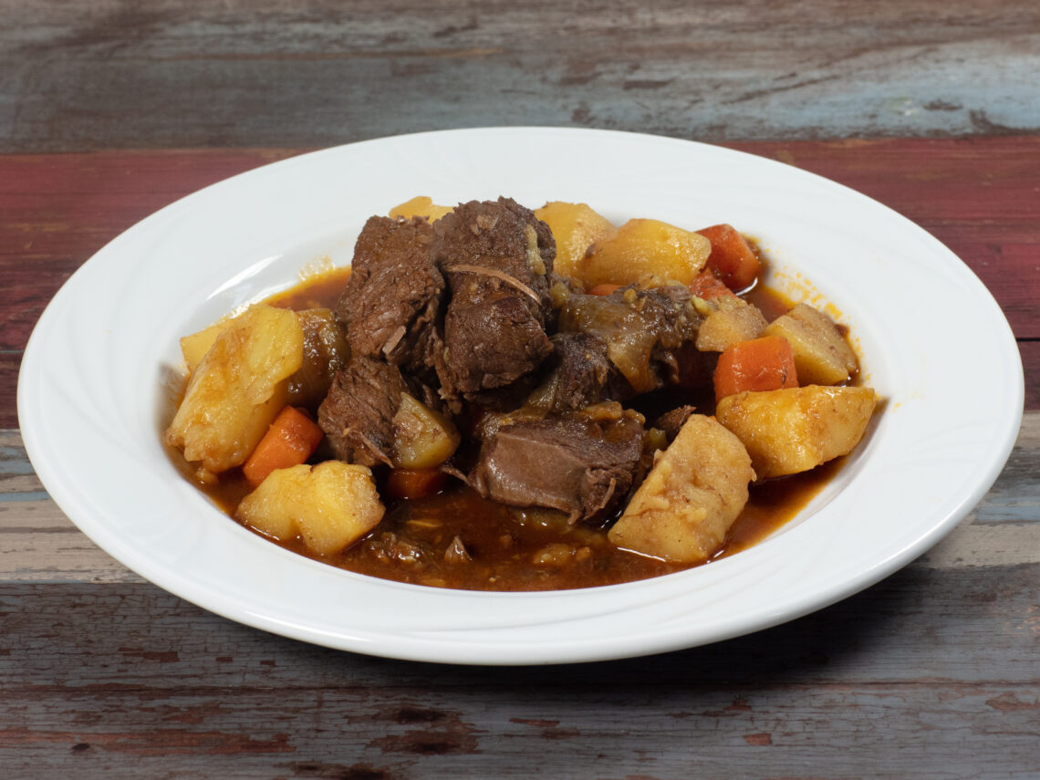 - Quando la carne ha terminato la cottura, aggiungere verdure e patate spadellate, salare , coprire con il coperchio e continuare la cottura per altri 40 minuti.