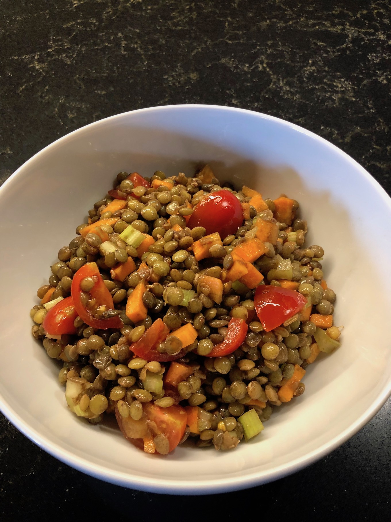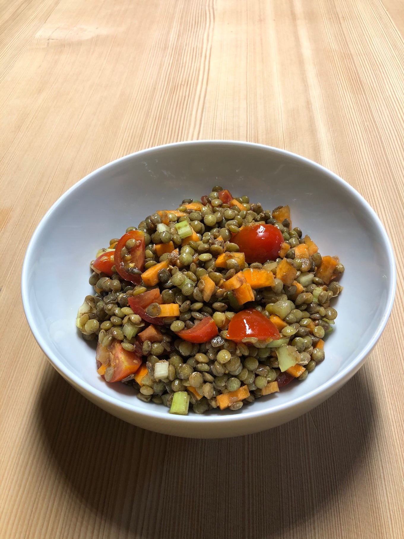- Condire le lenticchie ancora calde. Mescolare bene.