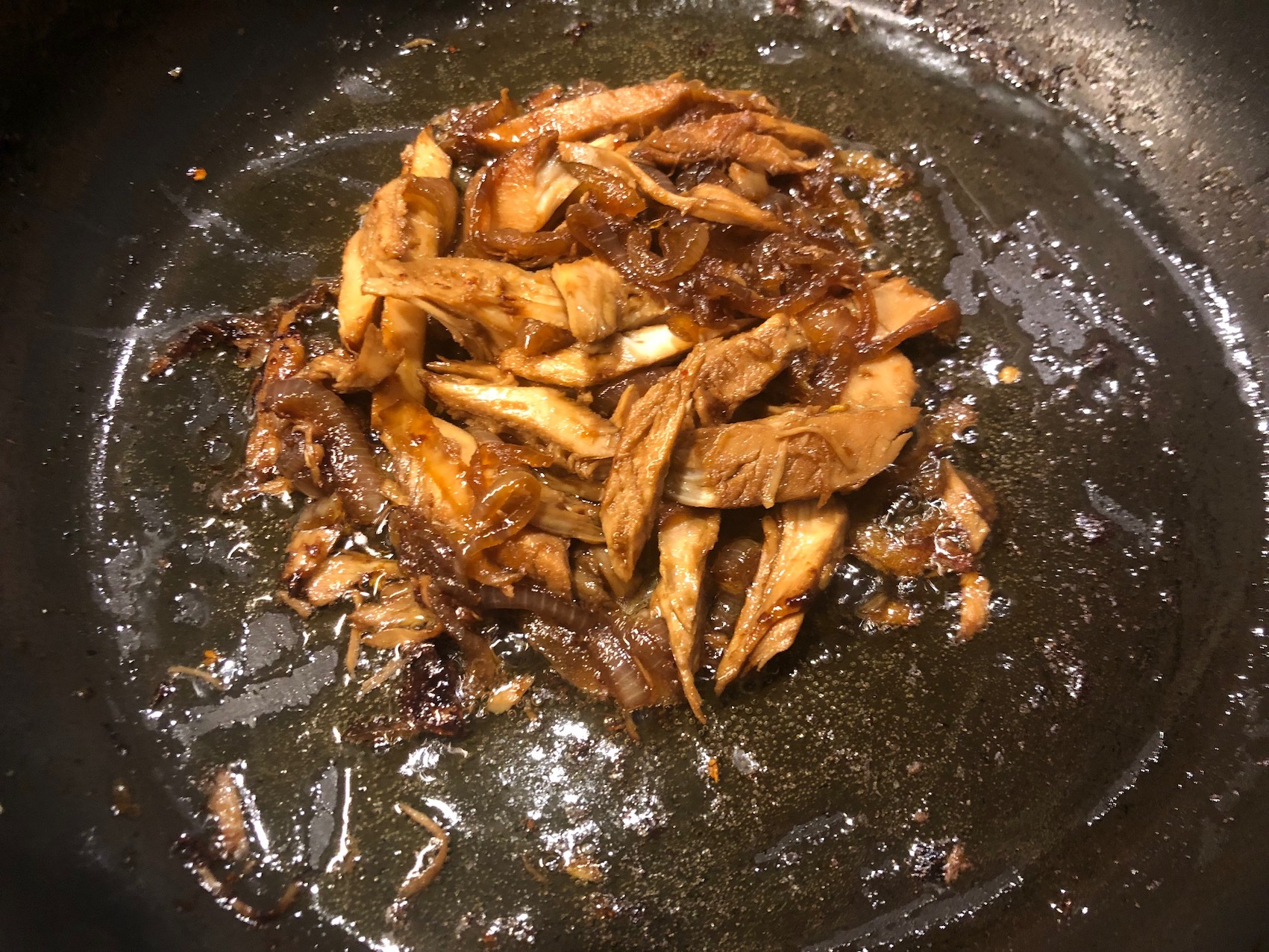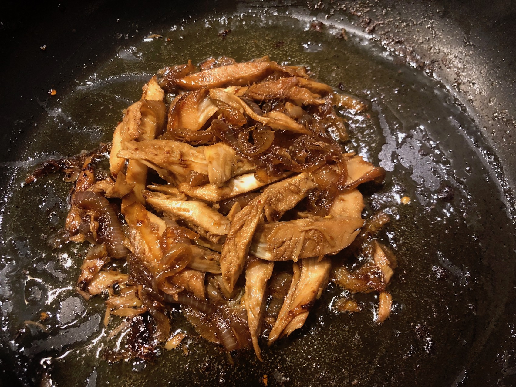 - Unire la carne alle cipolle e aggiungere un cucchiaio di saké, uno di zucchero e due di salsa di soia.