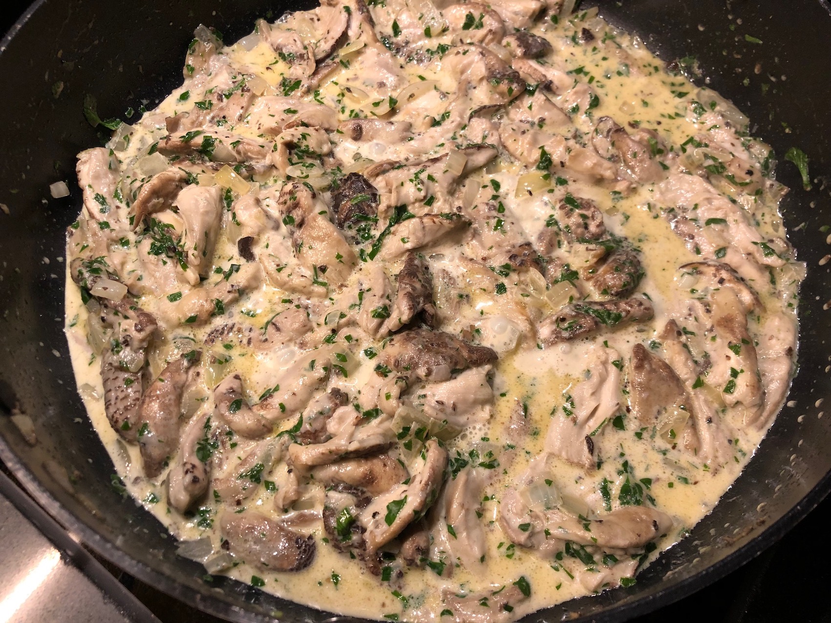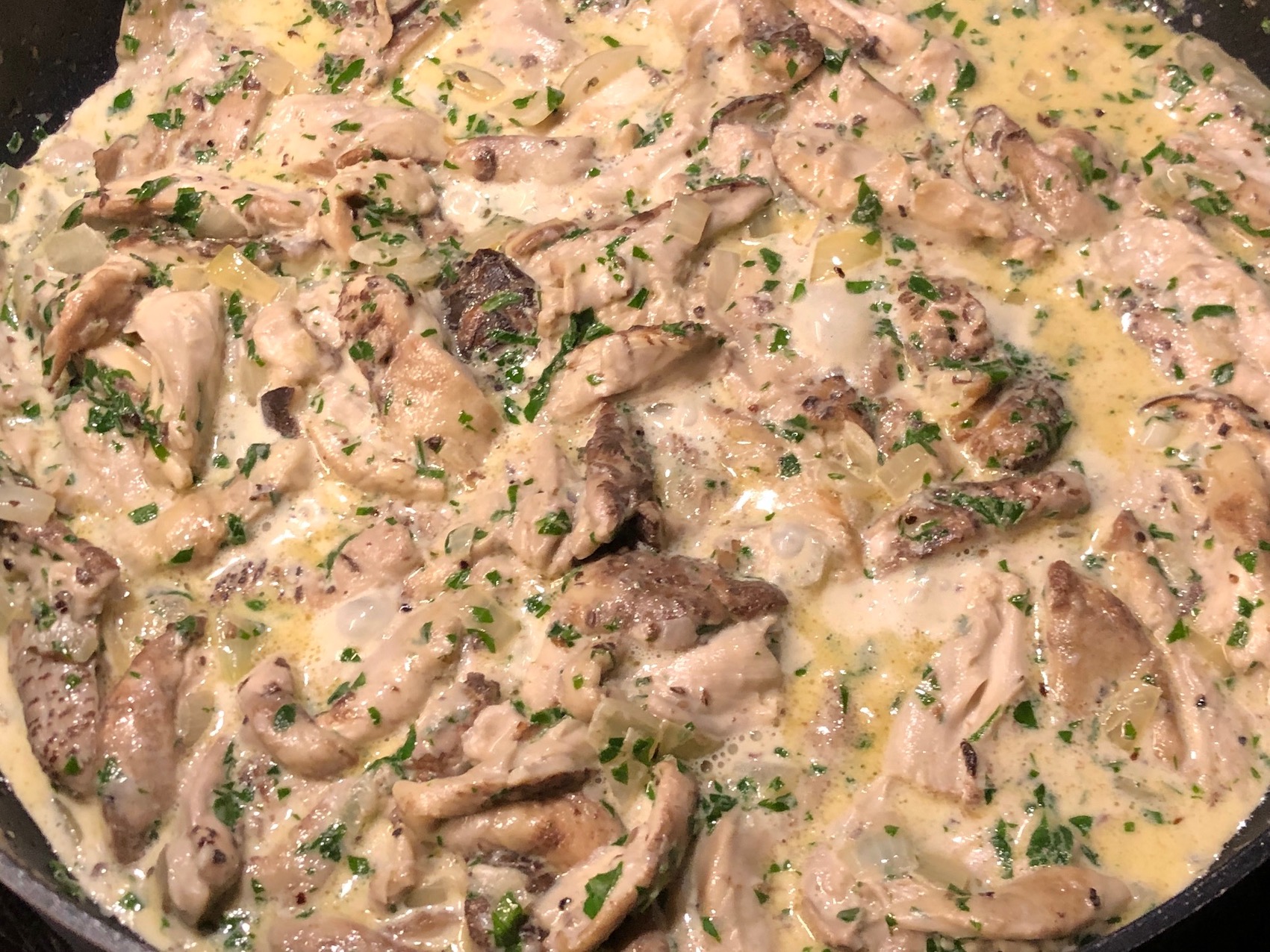 - Abbassare la fiamma, aggiungere la panna e proseguire la cottura amalgamando bene il tutto.