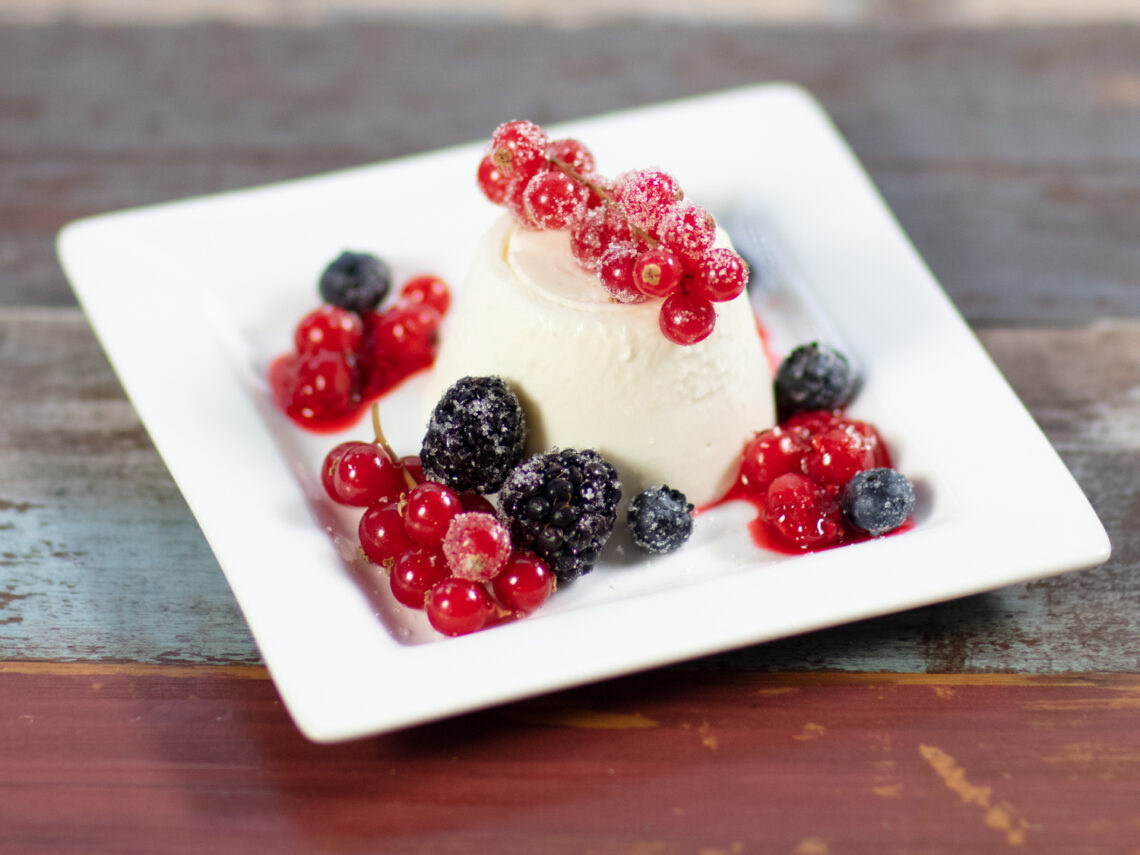 - Rovesciare la panna cotta su un piattino e decorare con topping a piacimento (frutti di bosco, crema al caramello, succo di fragole, ecc.)