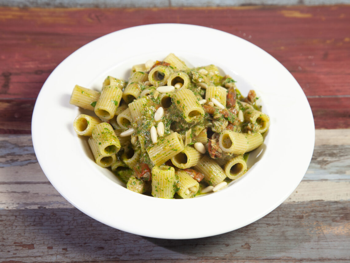 - Mescolare bene, aggiungere il pesto e amalgamare bene il tutto.