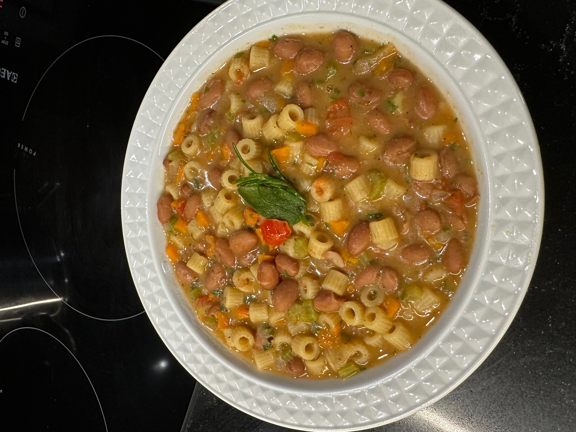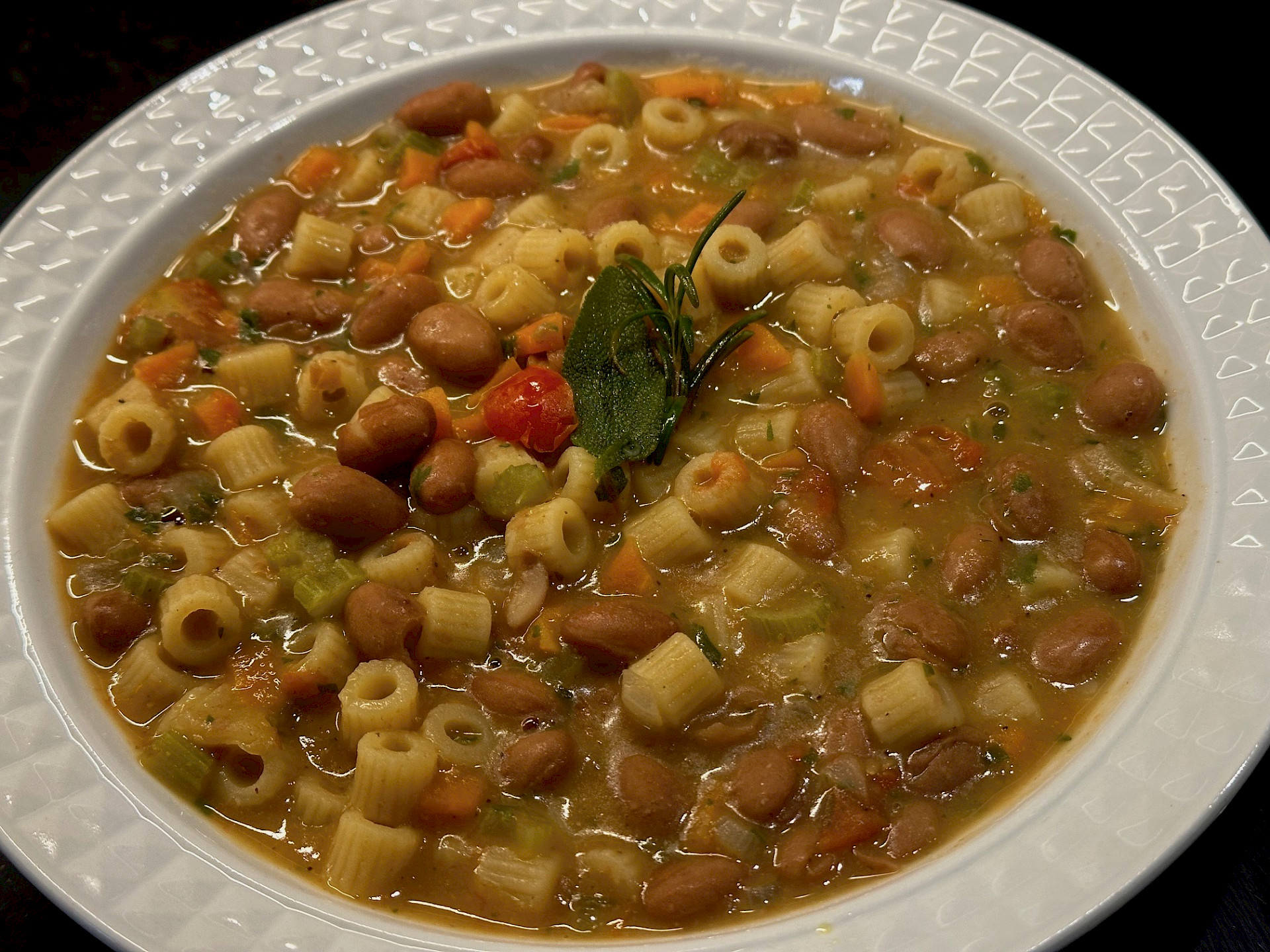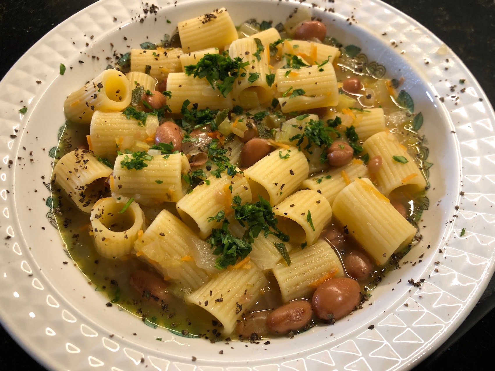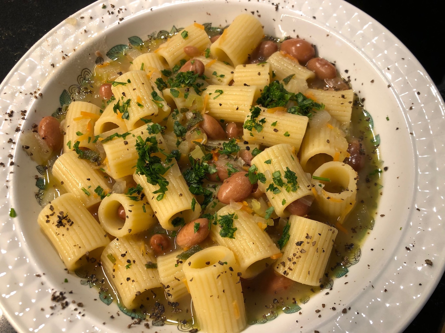 - Pochi minuti prima che la pasta sia cotta aggiungere i fagioli conservati interi.
