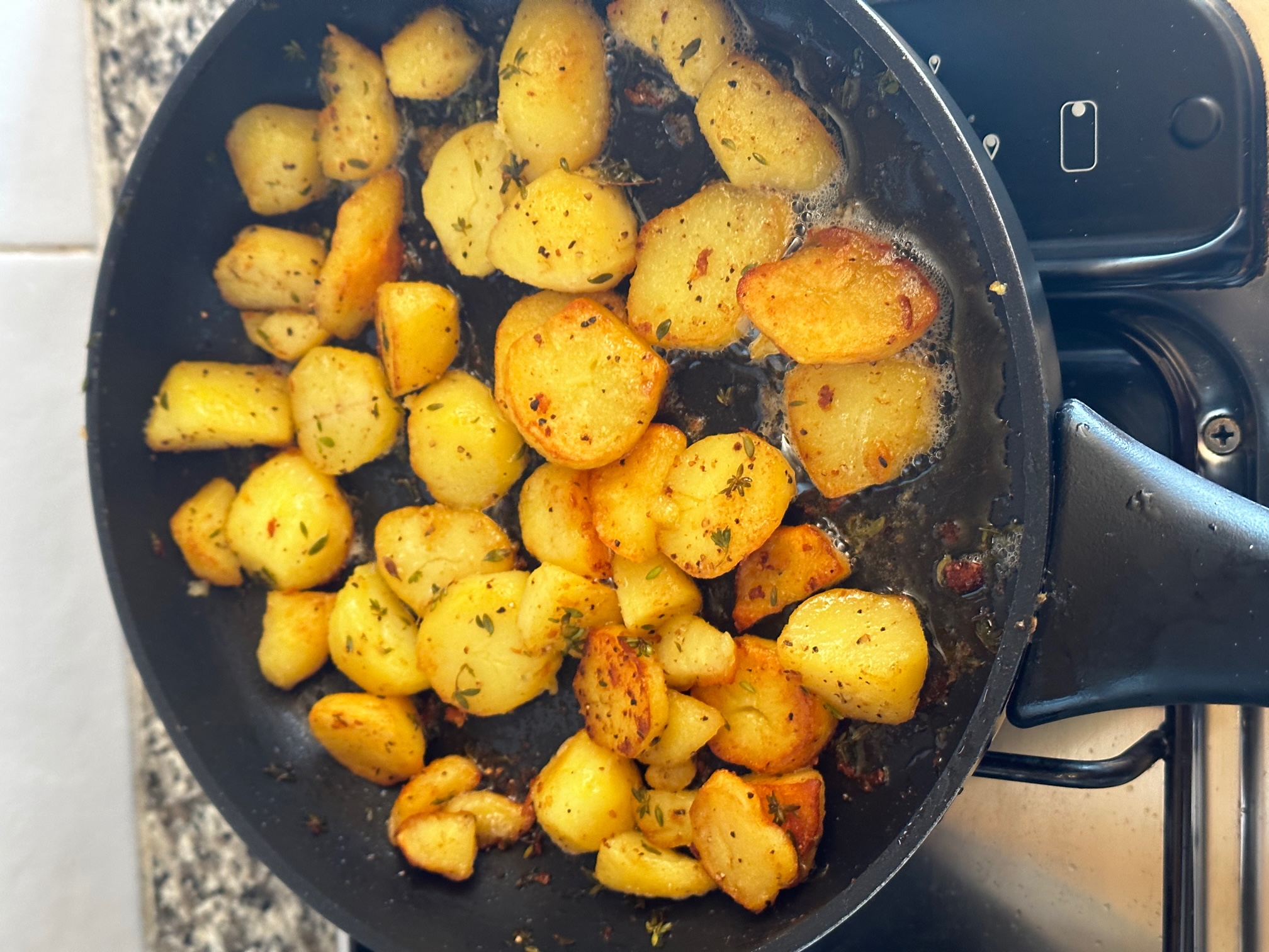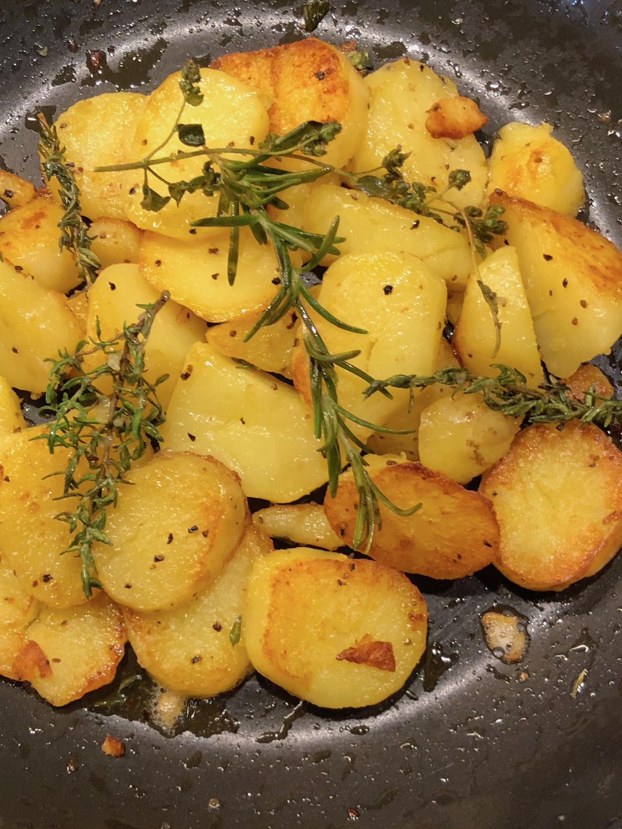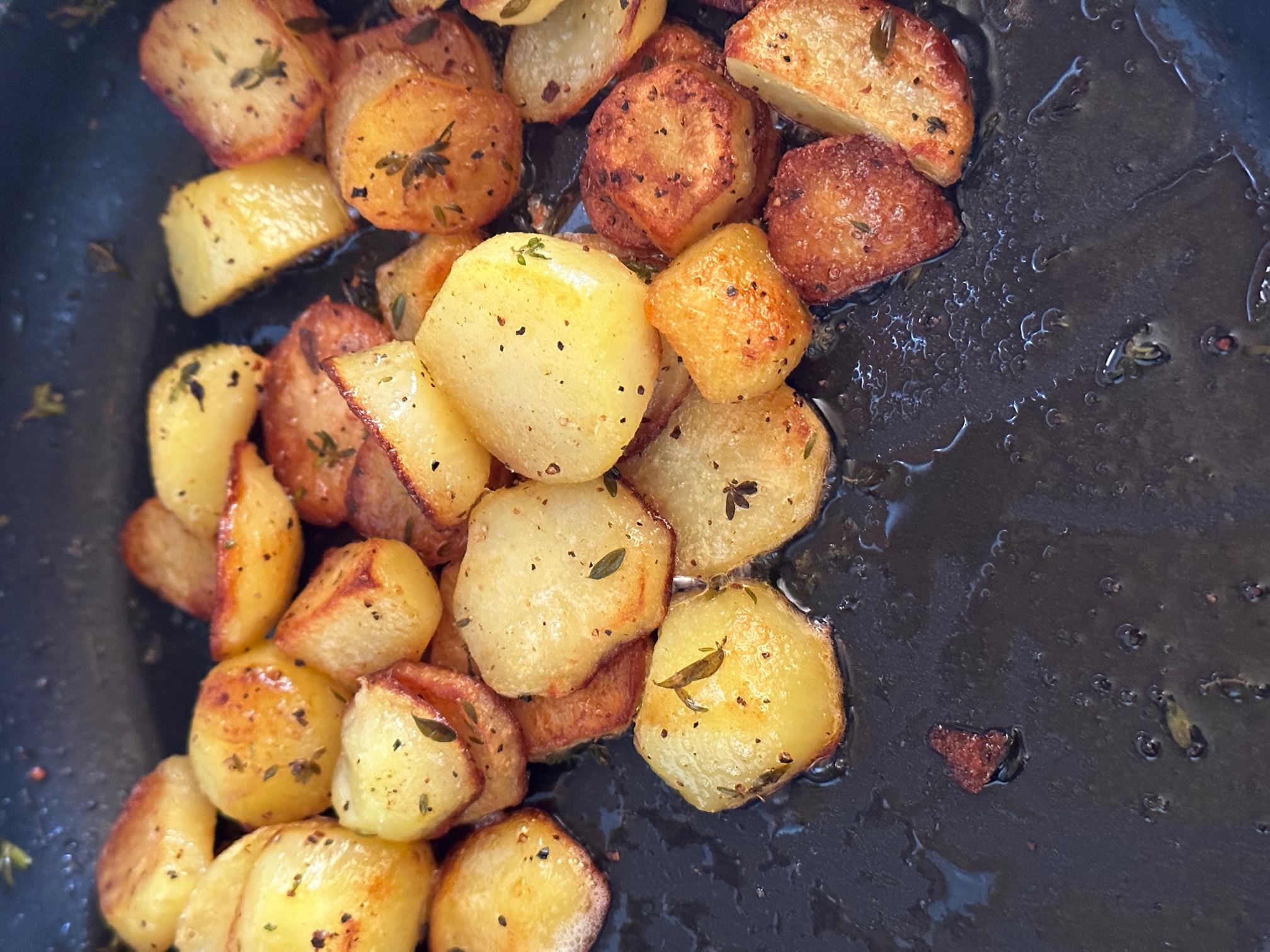 per un risultato migliore, ovvero per evitare che le patate si sfaldino durante la cottura in padella, toglierle dal fuoco prima che siano completamente cotte (la punta di un coltello non dovrebbe trapassarle senza incontrare un po' di resistenza) - burro q.b.
