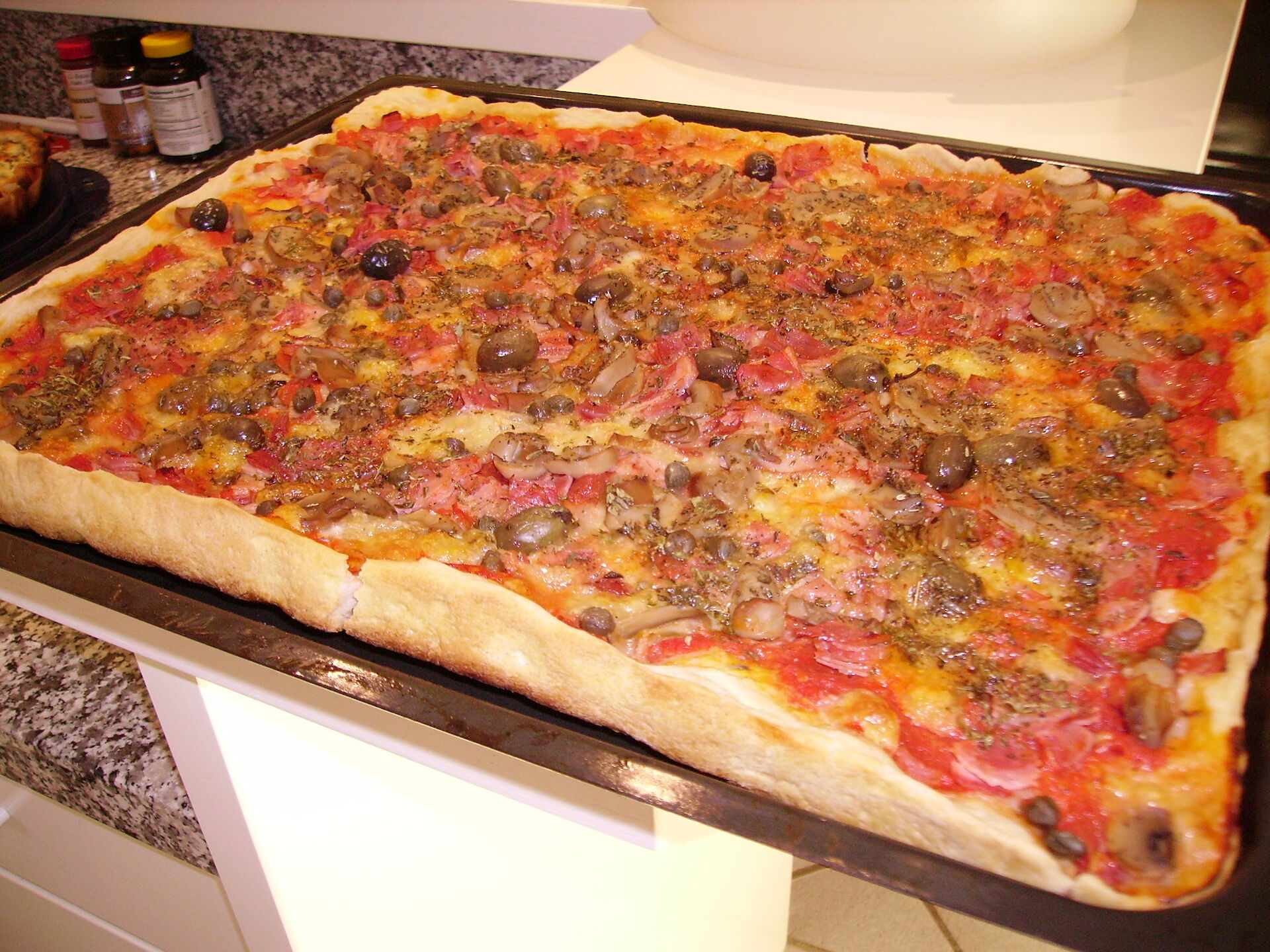 La quantità della guarnizione va definita a buon senso e secondo il gusto personale! - Passare in forno (forno elettrico a 250° per ca 20-25 minuti; forno a legna a dipendenza della temperatura anche solo 5/10 min); controllare la cottura, togliere e servire.