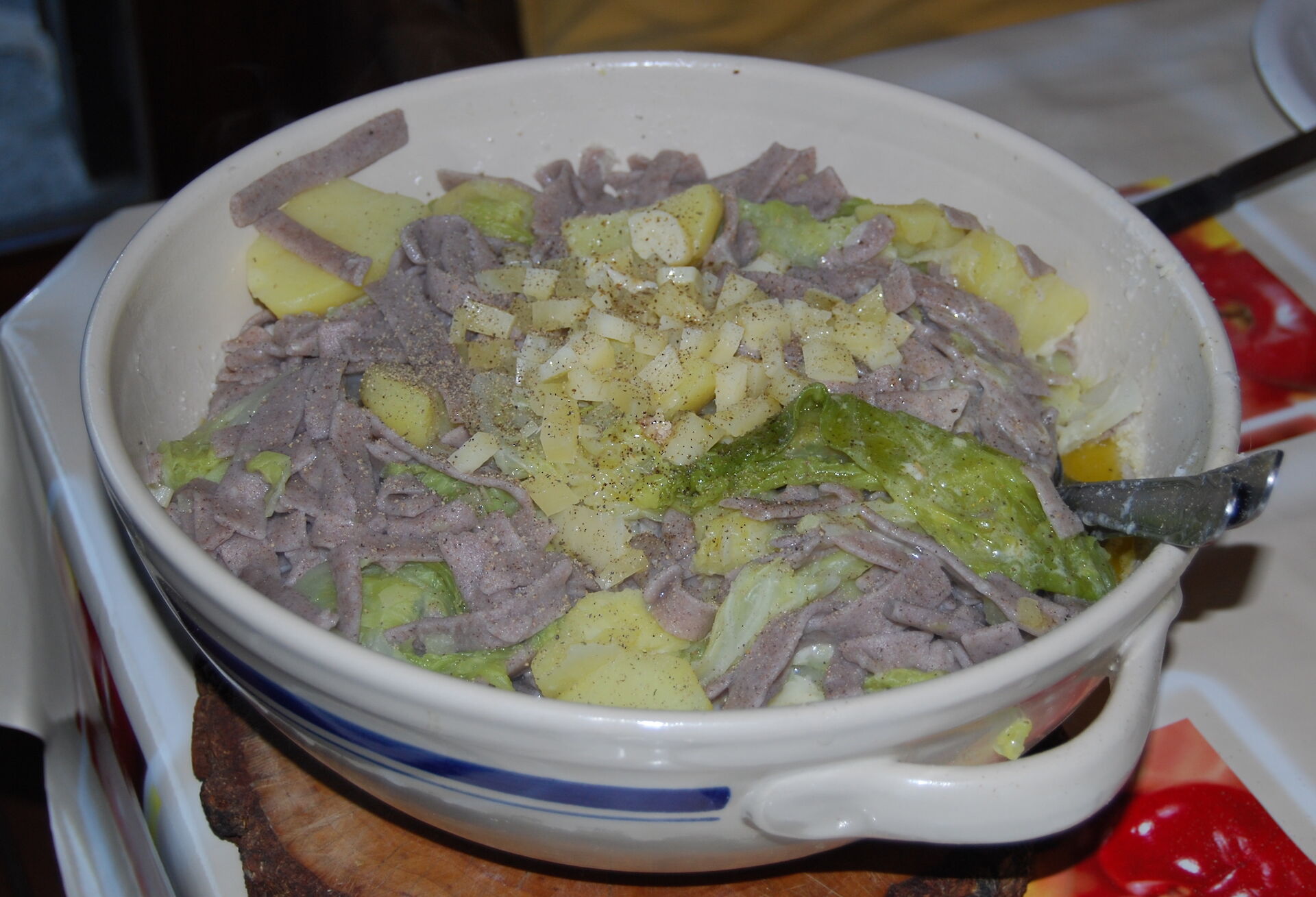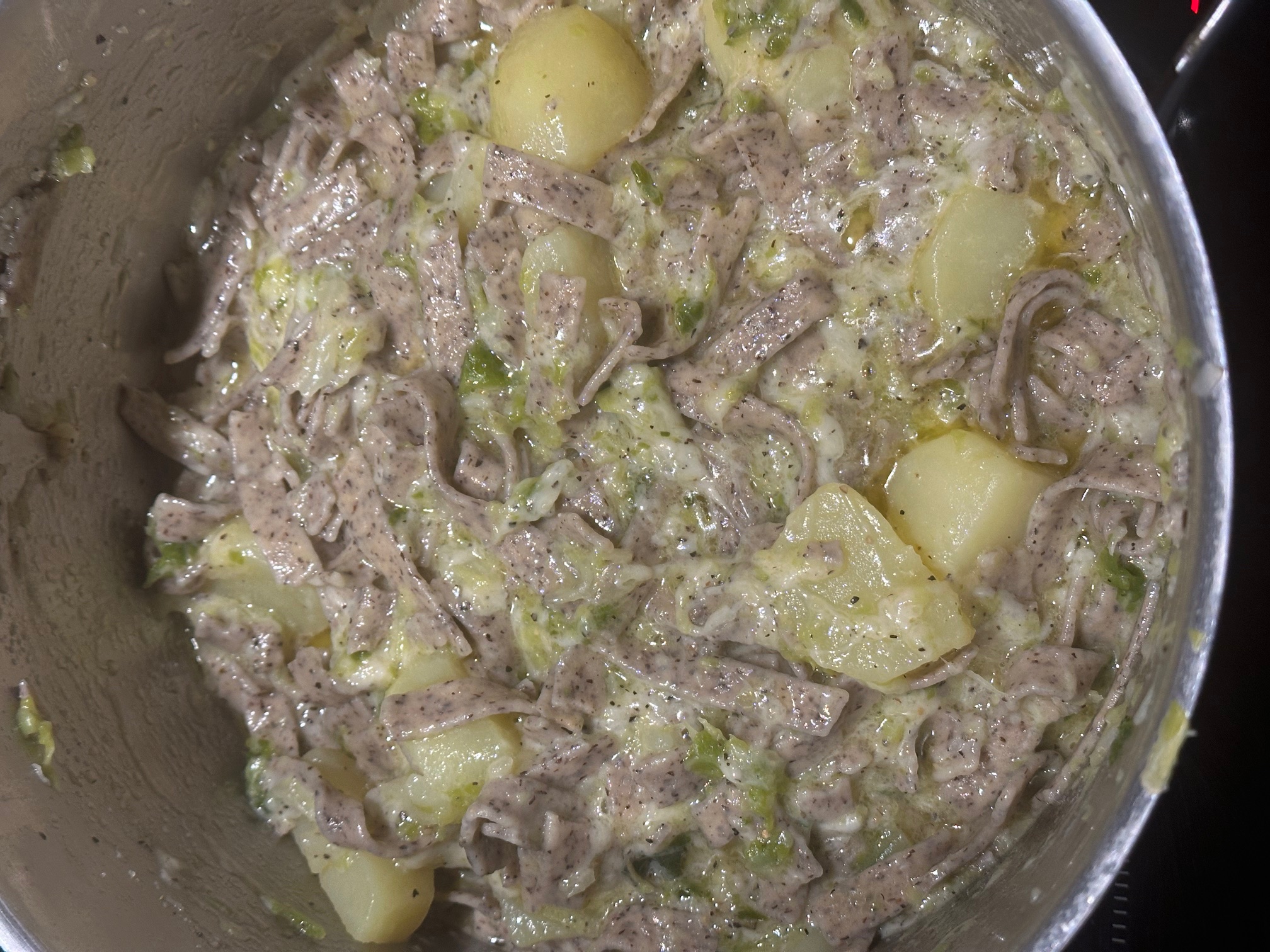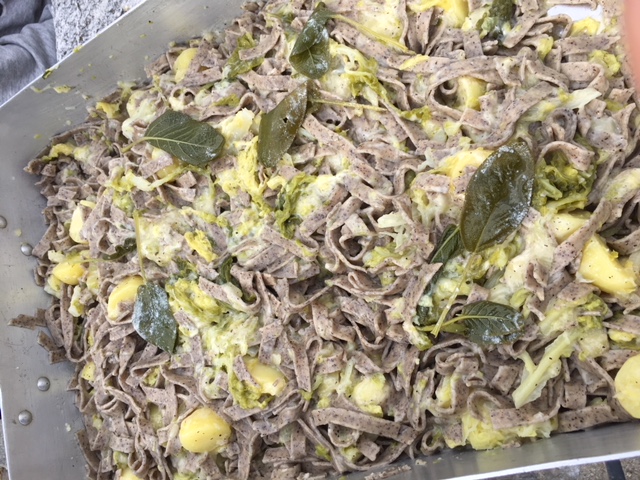 - Dopo ca 10 minuti unire i pizzoccheri e continuare la cottura ancora per ca 10 minuti (controllare la consistenza delle patate, che non devono essere dure!)