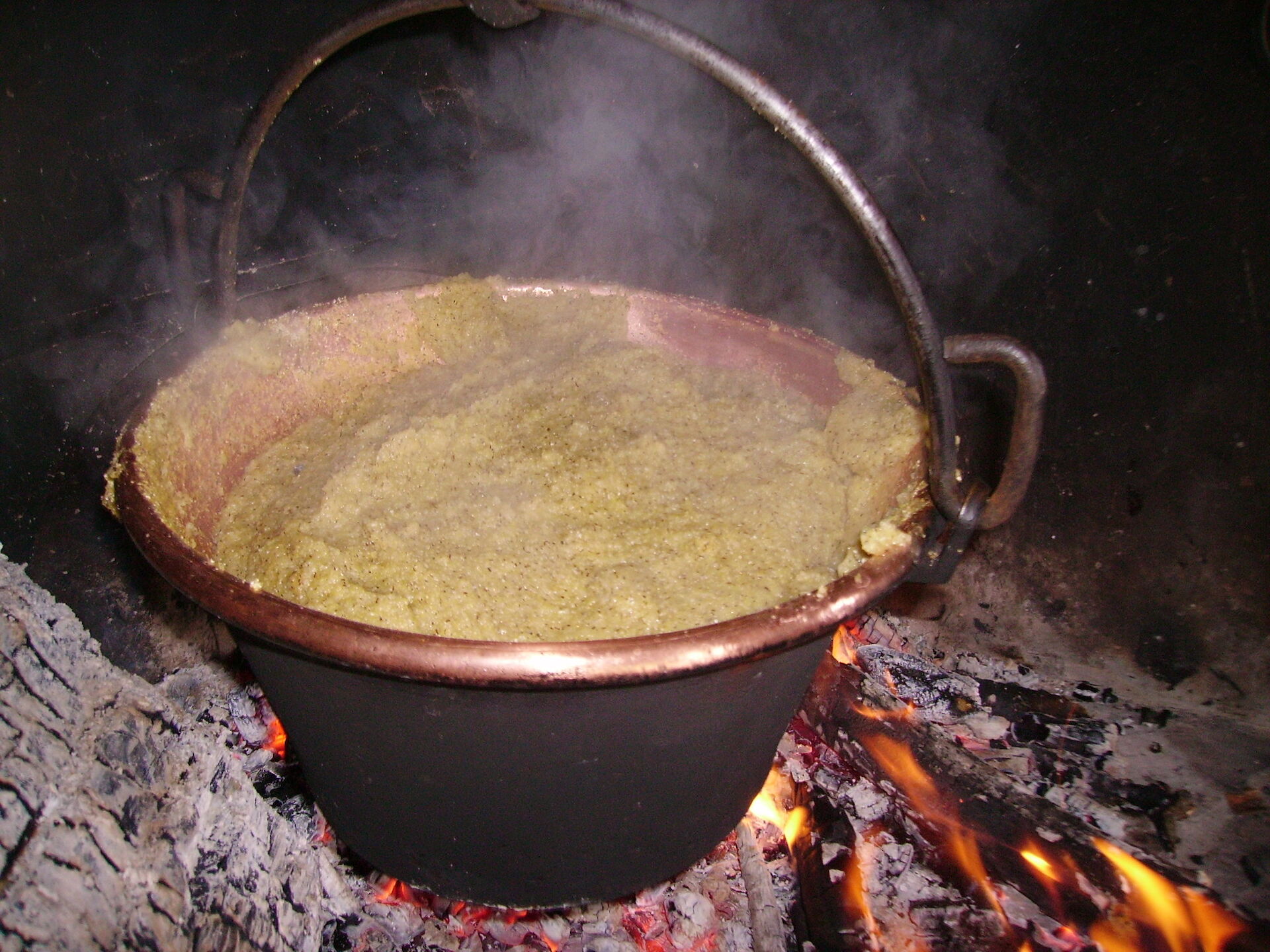 Questo processo può variare molto a dipendenza del tipo di farina - necessaria dunque un po' di esperienza e di sensibilità al tatto. - Cuocere almeno un'ora rimestando di frequente con l'apposito mestolo di legno.