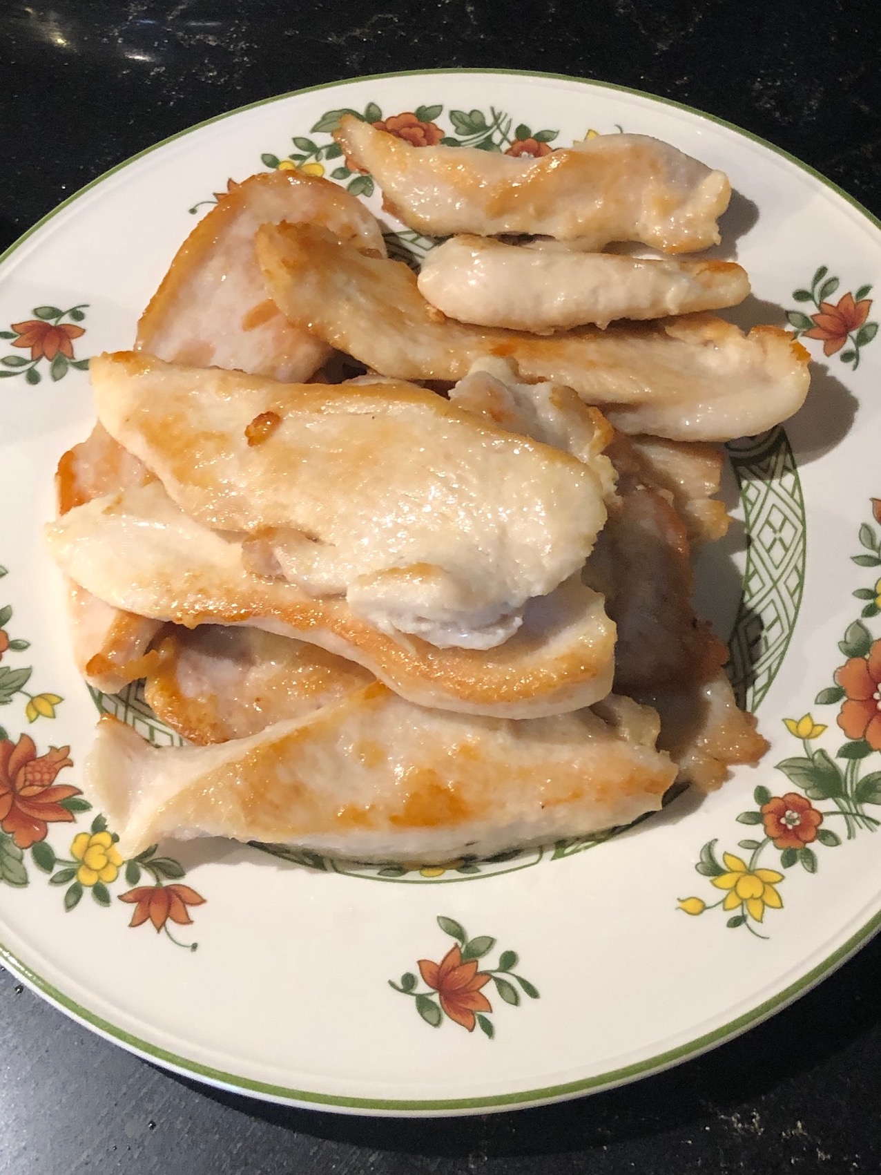 - Tagliare i petti di pollo a listarelle di ca 7 cm.