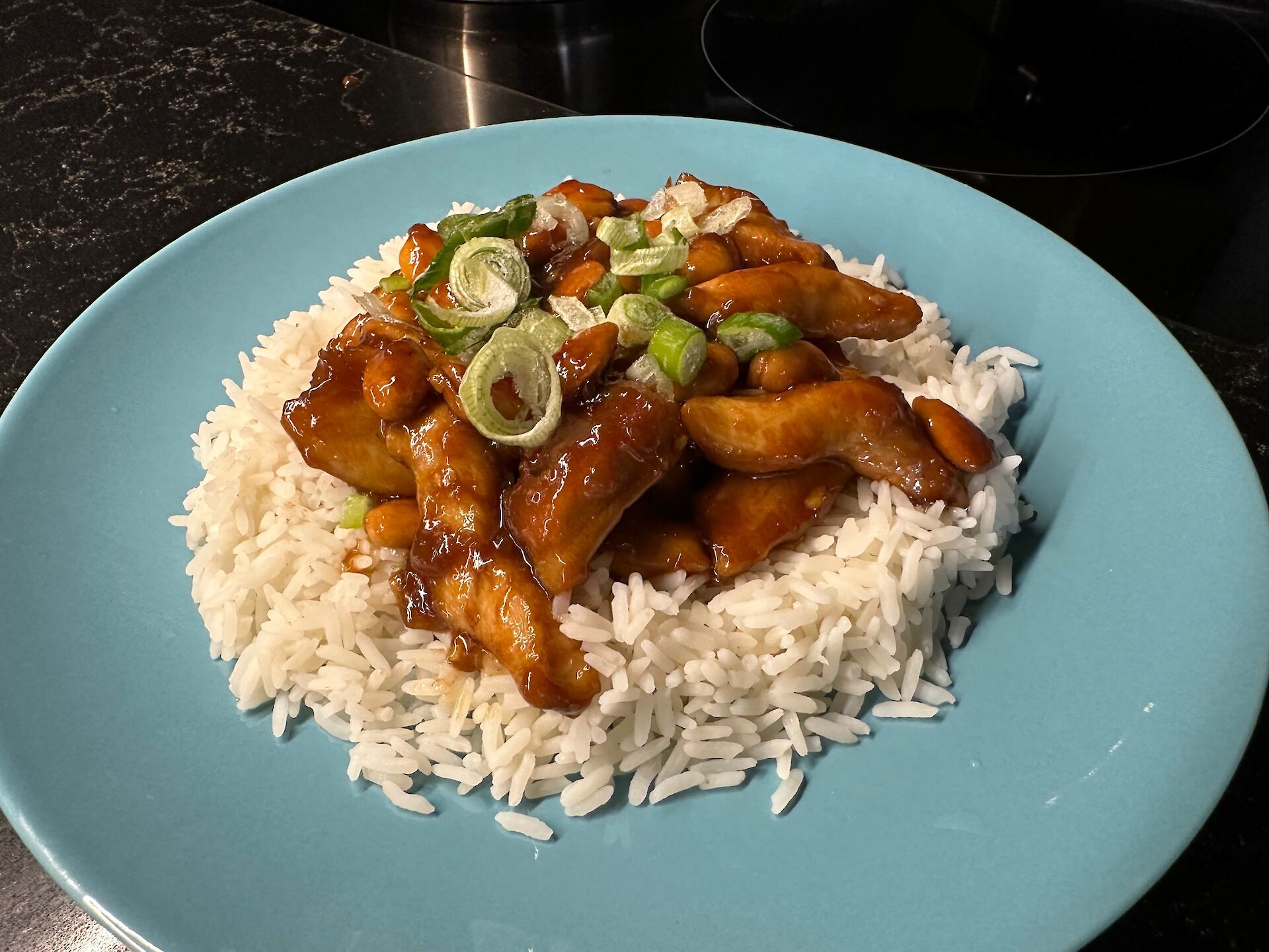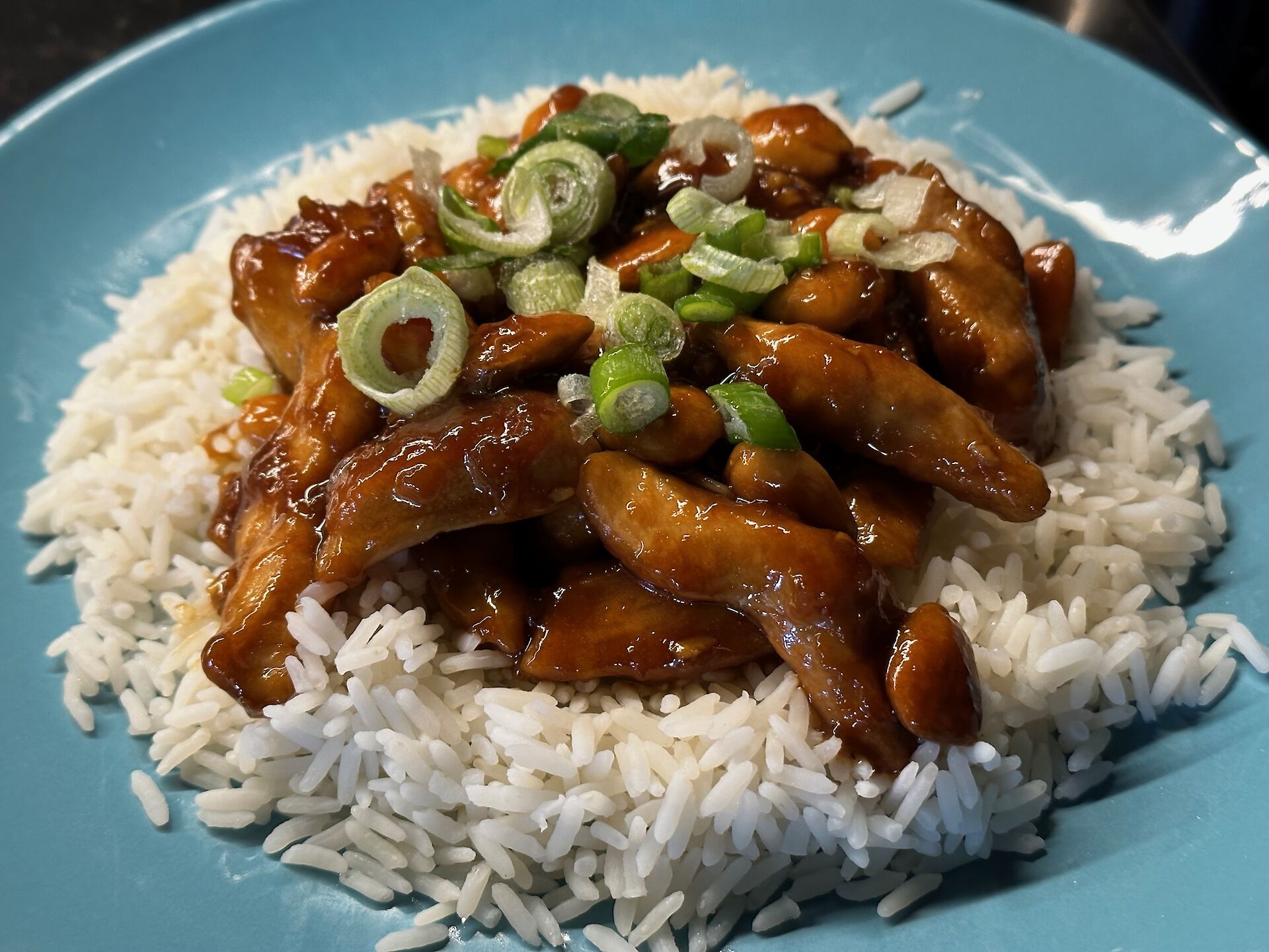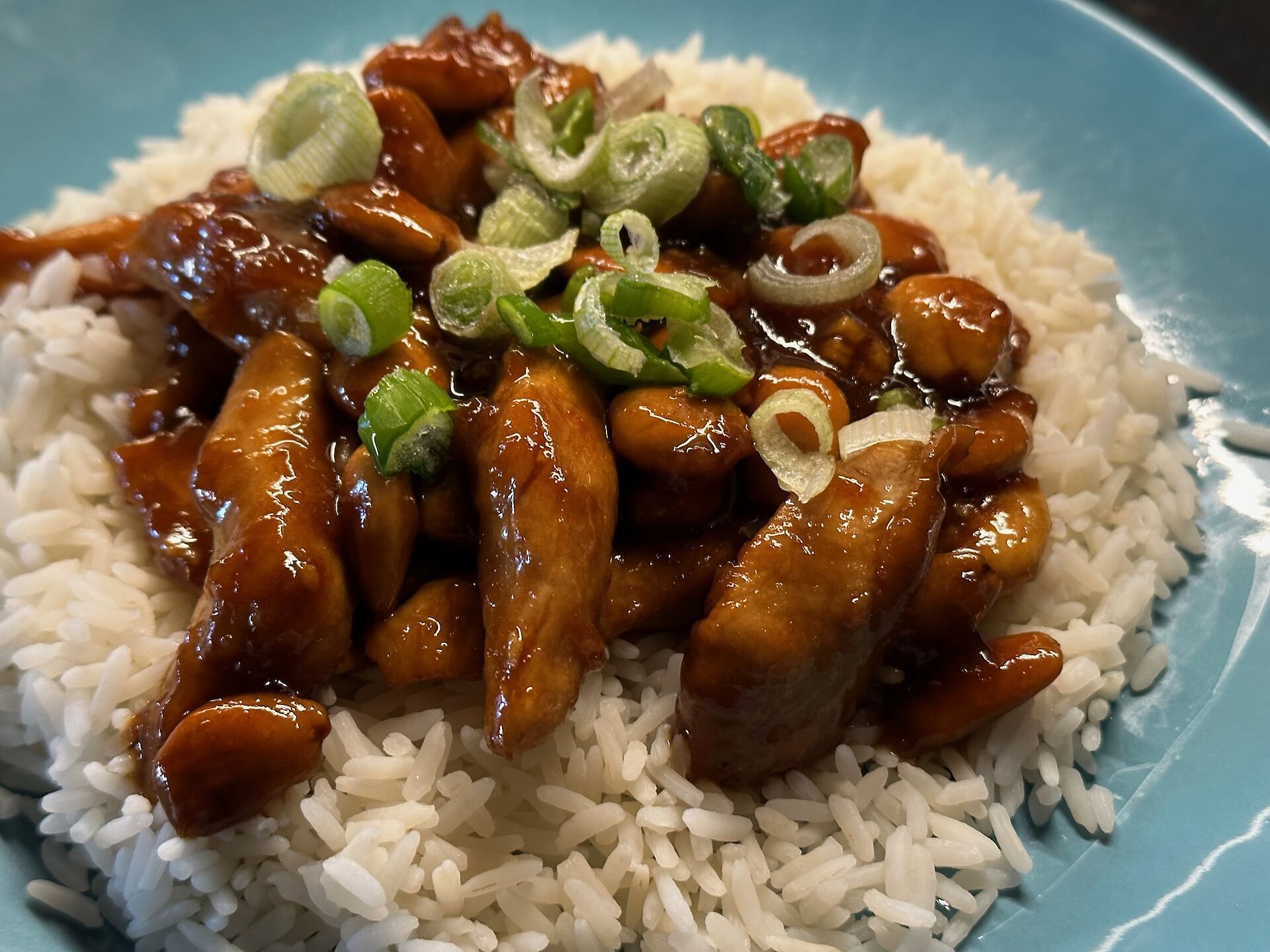 - Quando il pollo è ben rosolato aggiungere lo zenzero tritato e dopo un paio di minuti integrare le mandorle.
