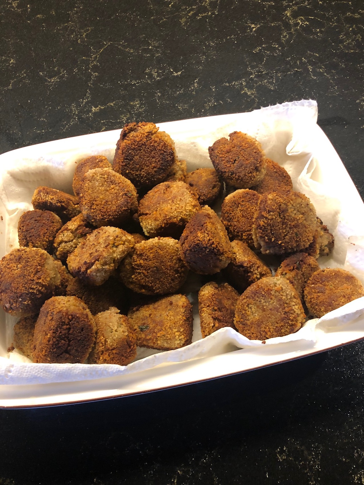 - Quando le polpette risultano ben dorate e croccanti, scolarle su carta da cucina e lasciarle asciugare dall'olio in eccesso.