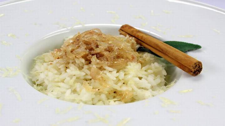 - Aggiungere lo sbrinz grattugiato e il soffritto di scalogno ancora sfrigolante.