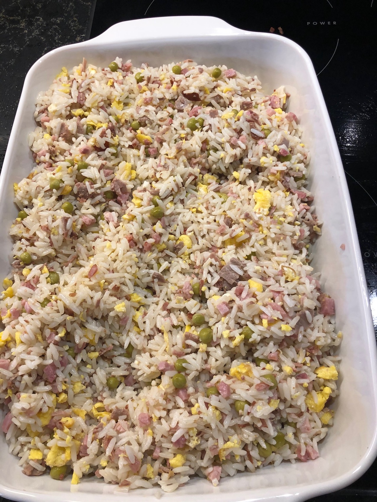 - Aggiungere il riso e mescolare delicatamente, badando che gli ingredienti non si attacchino tra loro.
