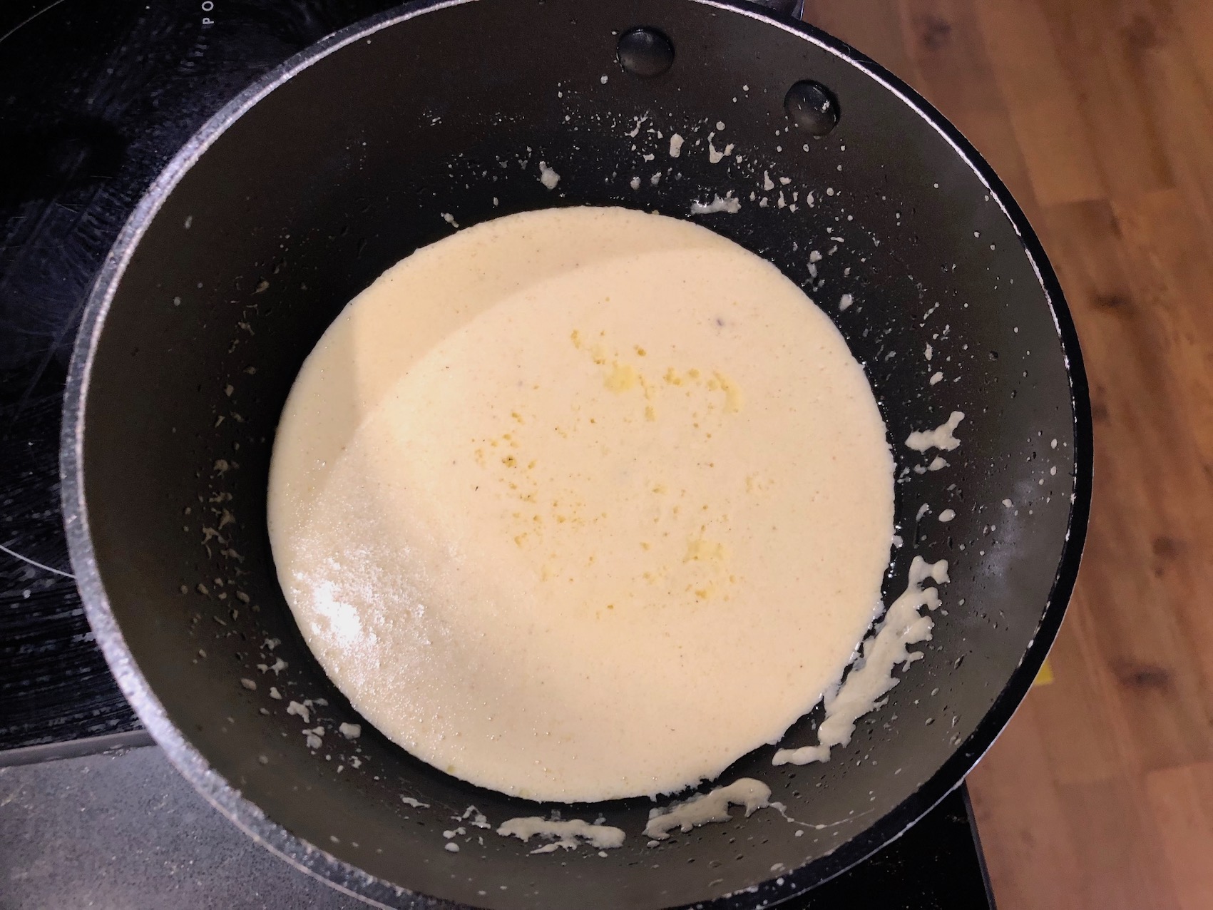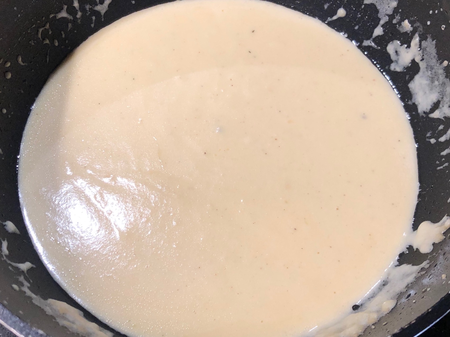 - In un pentolino riscaldare un cucchiaio di panna liquida e mezzo bichiere di latte.