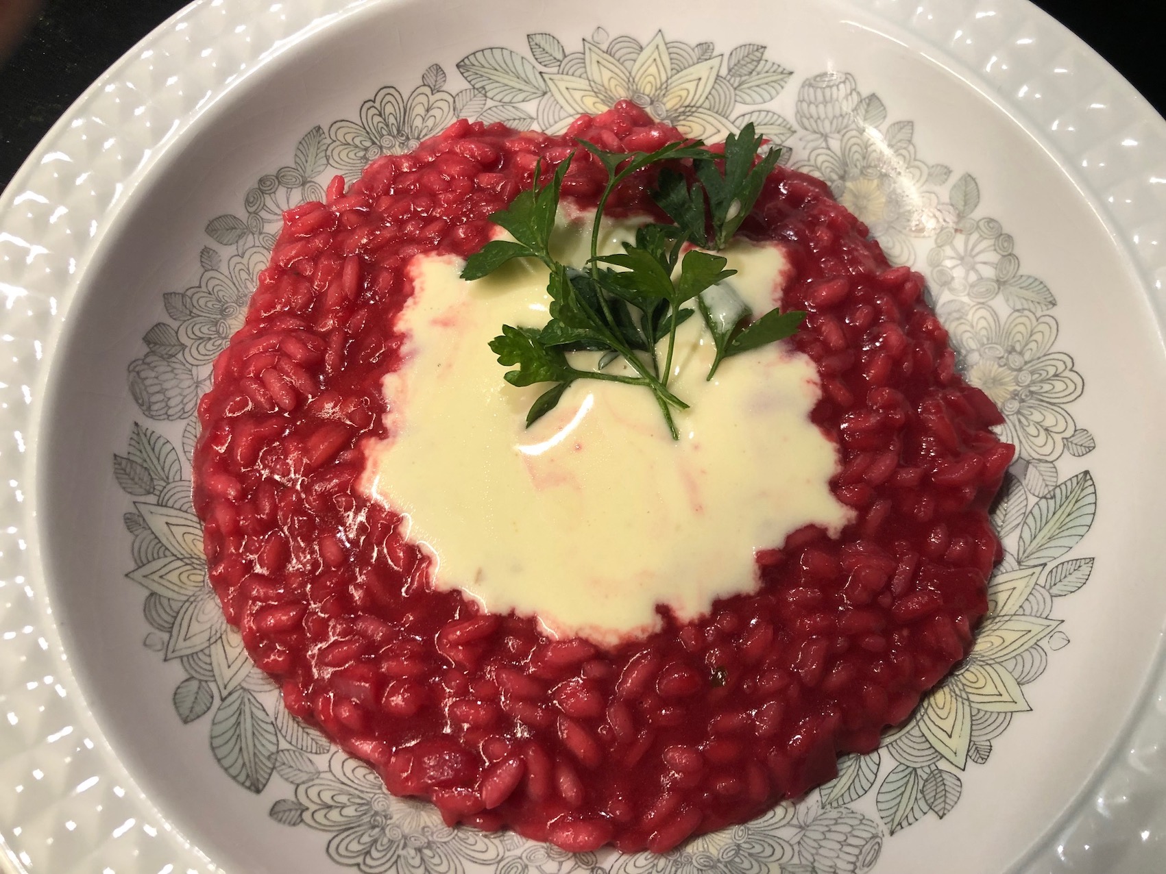 - Dopo 15 minuti togliere il risotto dal fuoco e mantecarlo con il burro e la barbabietola.