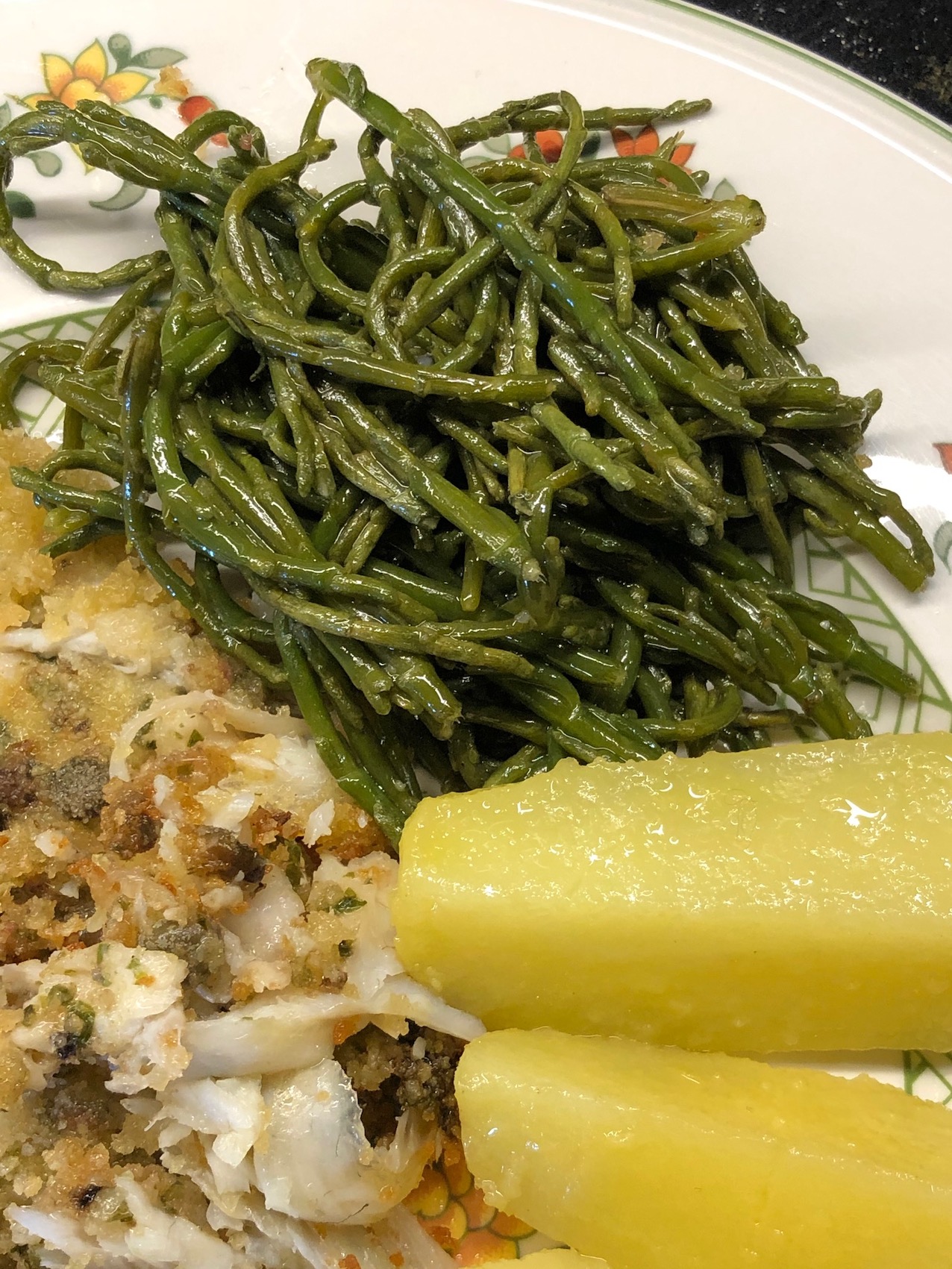 La salicornia, o asparago di mare, è un contorno saporito e gustoso e anche molto semplice da preparare! Accompagna molto bene tutti i piatti di pesce, ma si può aggiungere anche in una spaghettata con i frutti di mare: darà un sapore in più al piatto! Non serve salarla, in quanto è già salata di suo.