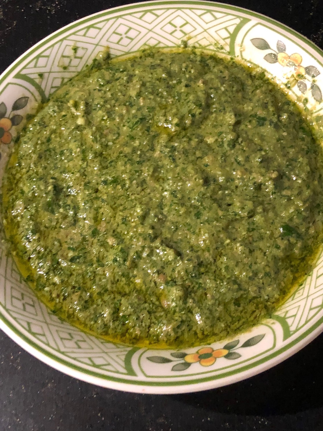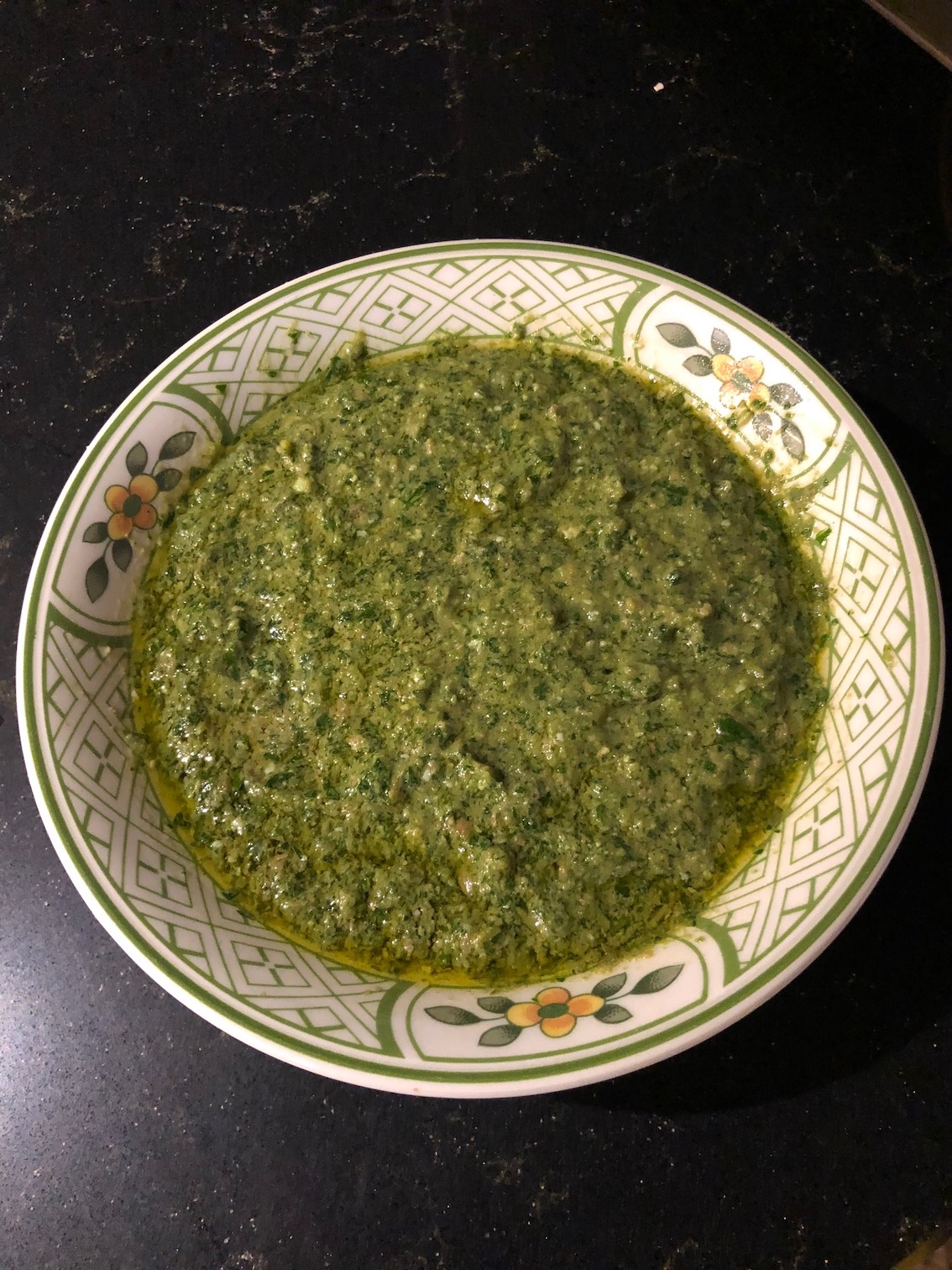 - Tritare finemente l'uovo, il prezzemolo, lo spicchio d'aglio, i capperi, il cetriolino e le acciughe.