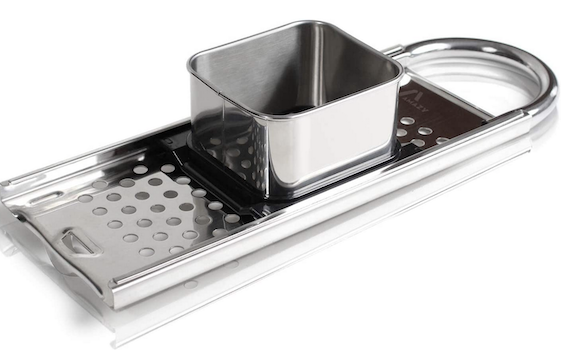 Si tratta in pratica di una grattugia con fori rotondi. Grazie ad un piccolo contenitore che scorre sulla grattugia e riempito con l'impasto, si ricavano gli spaetzli, facendoli cadere direttamente nell'acqua bollente.