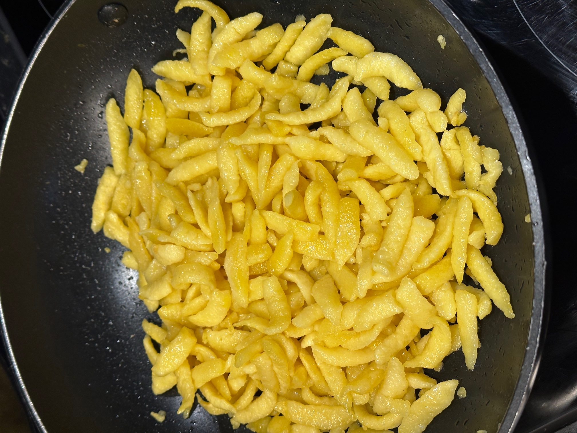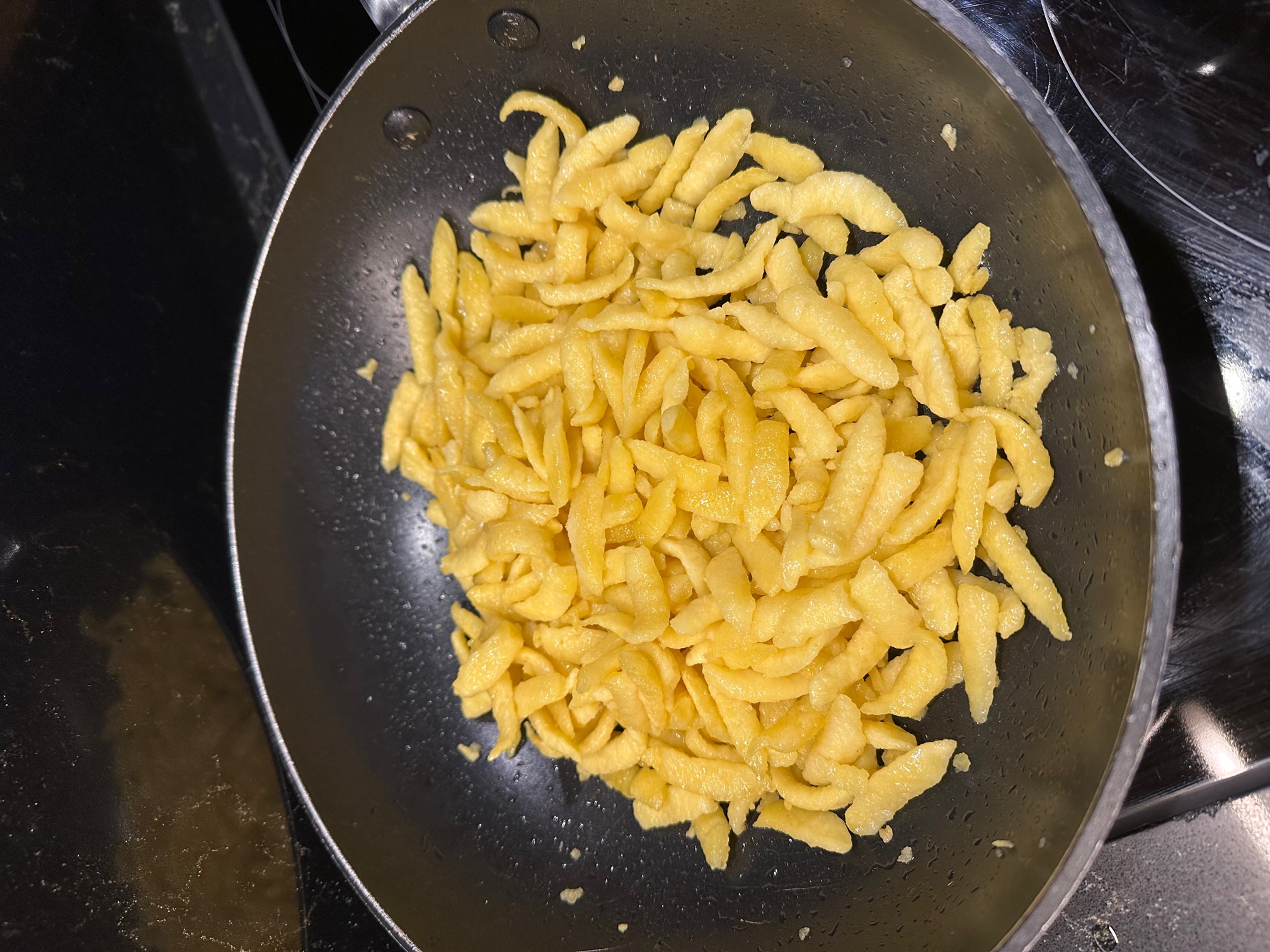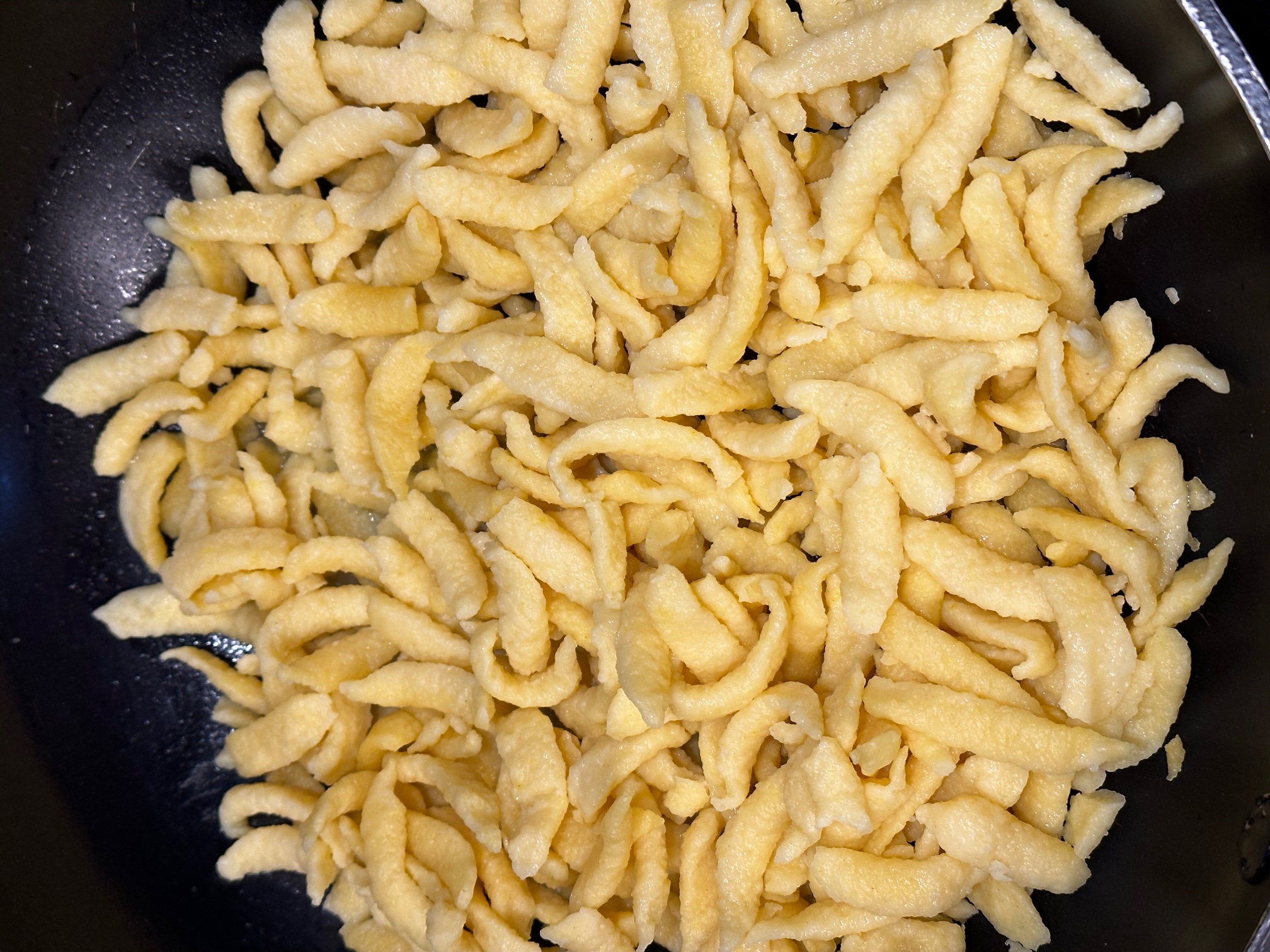 - Fare sciogliere 50 g di burro in una padella e qundi versarvi la quantità di spaetzli desiderata.