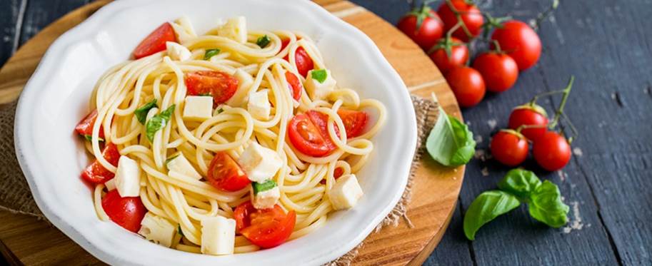 - Condire i formaggi in una ciotola con l'olio, il sale, il pepe e i pomodori.