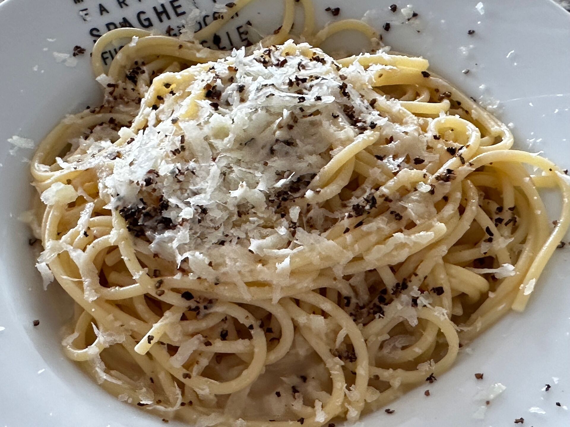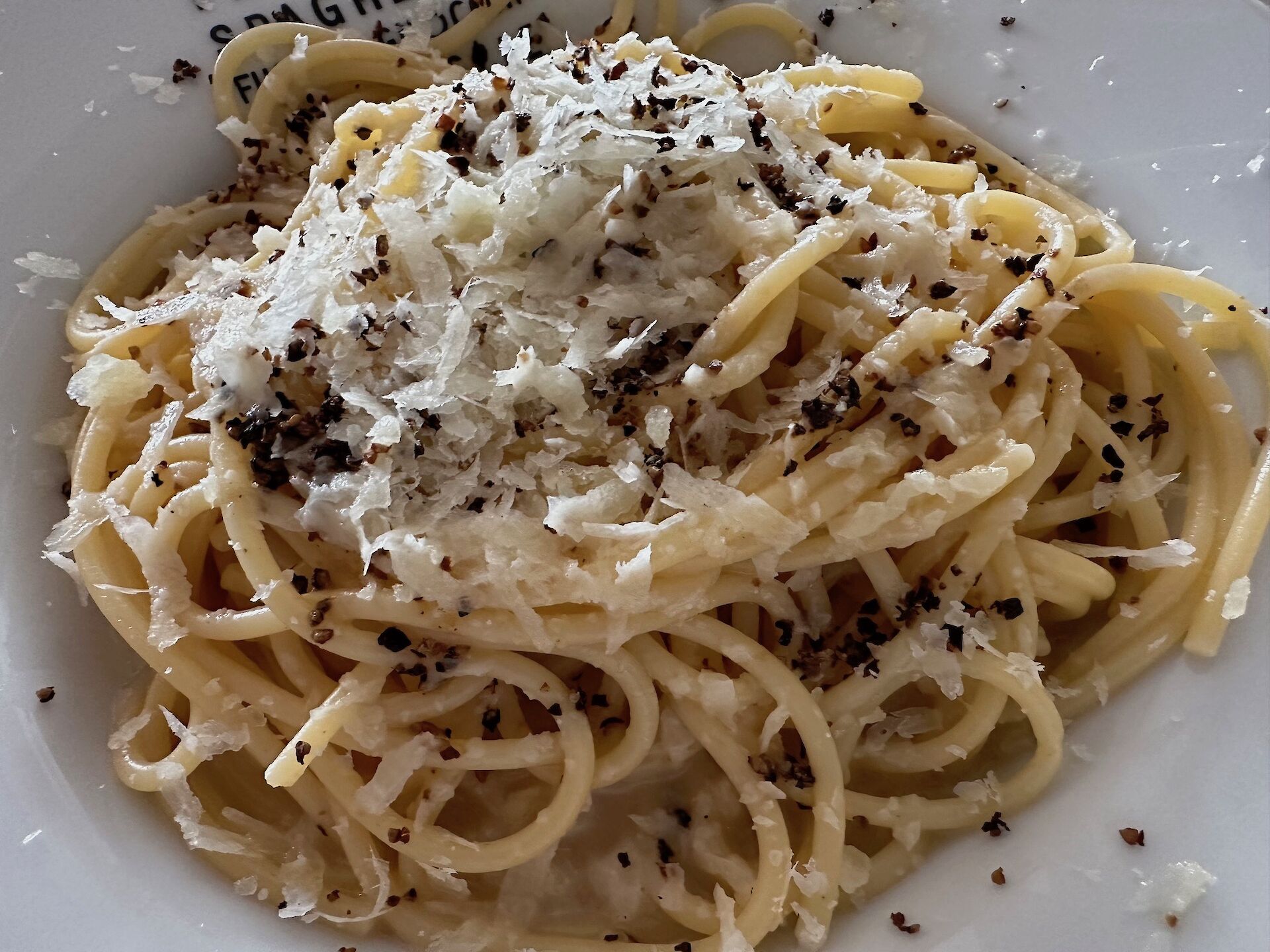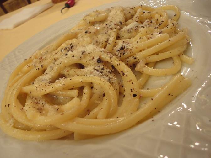 È una ricetta tradizionale e antica della cucina romana, ma non se ne concosce la provenienza reale. Una ricetta davvero semplice ma che, per via della sua semplicità, può facilmente essere sbagliata e diventare un pasticcio. Per prepararla si usano due ingredienti: pepe nero e pecorino romano.