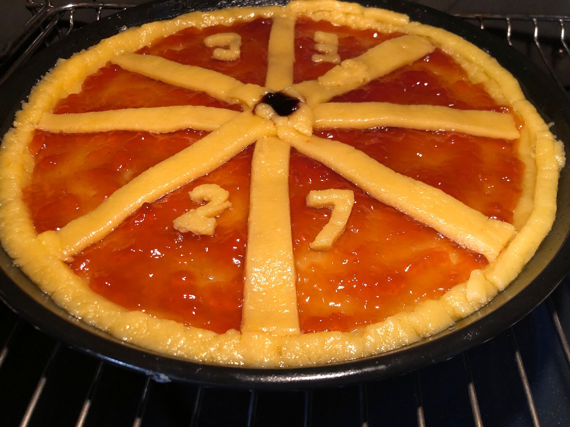 La decorazione si può fare secondo i propri gusti. La più tradizionale e ricorrente è quella con le striscioline di pasta incrociate (tipo Linzertorte). Personalmente ho scelto una decorazione a cerchietti... ma se qualcuno preferisce dei cuoricini, perchè no?